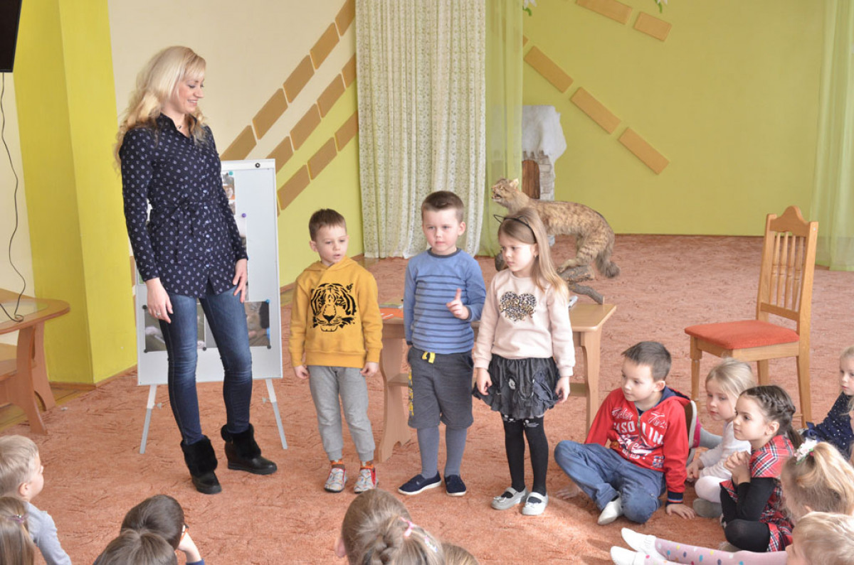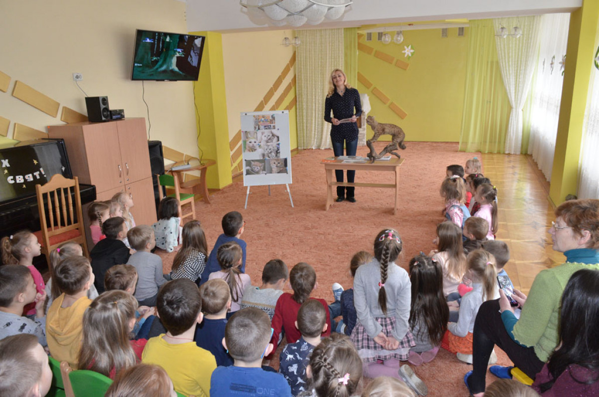Старший науковий співробітник відділу природи Волинського краєзнавчого музею Ланшина Л. В. розповіла вихованцям садочка про диких предків котів, про особливості життя і поведінки домашніх улюбленців, їх користь для людини і лікувальні властивості.
