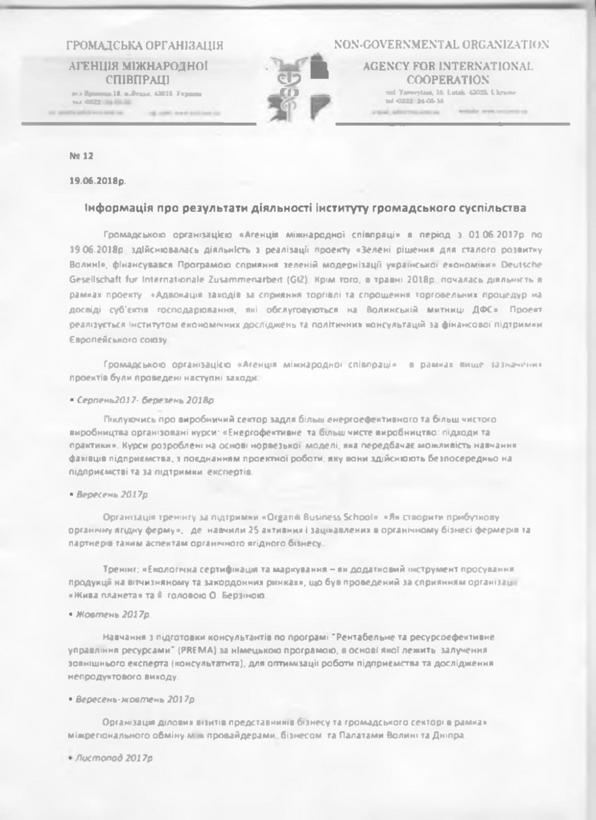 15 липня 2018, 23:54 останні оновлення: 16 липня 2018 16. Громадська організація "Агенція міжнародної співпраці"