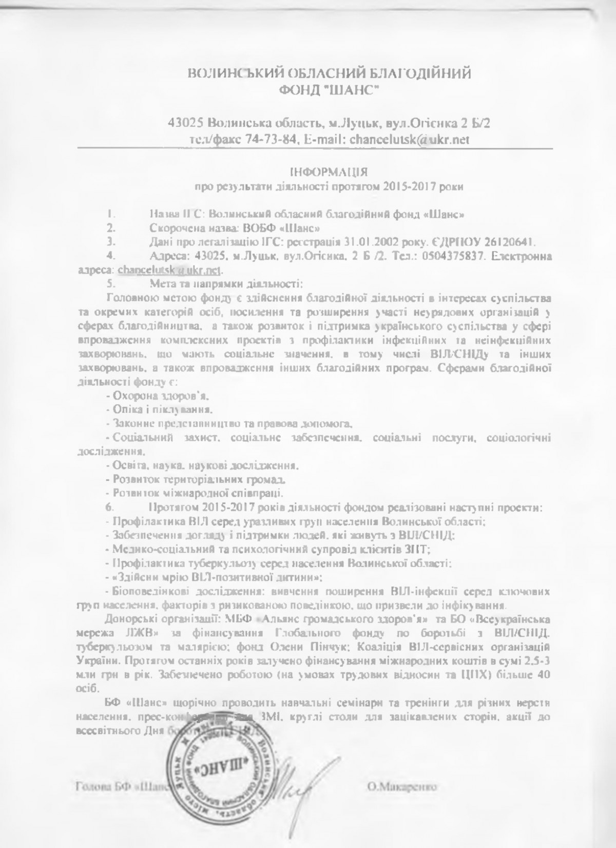16 липня 2018, 00:02 останні оновлення: 16 липня 2018 19. Волинський обласний Благодійний фонд "ШАНС"