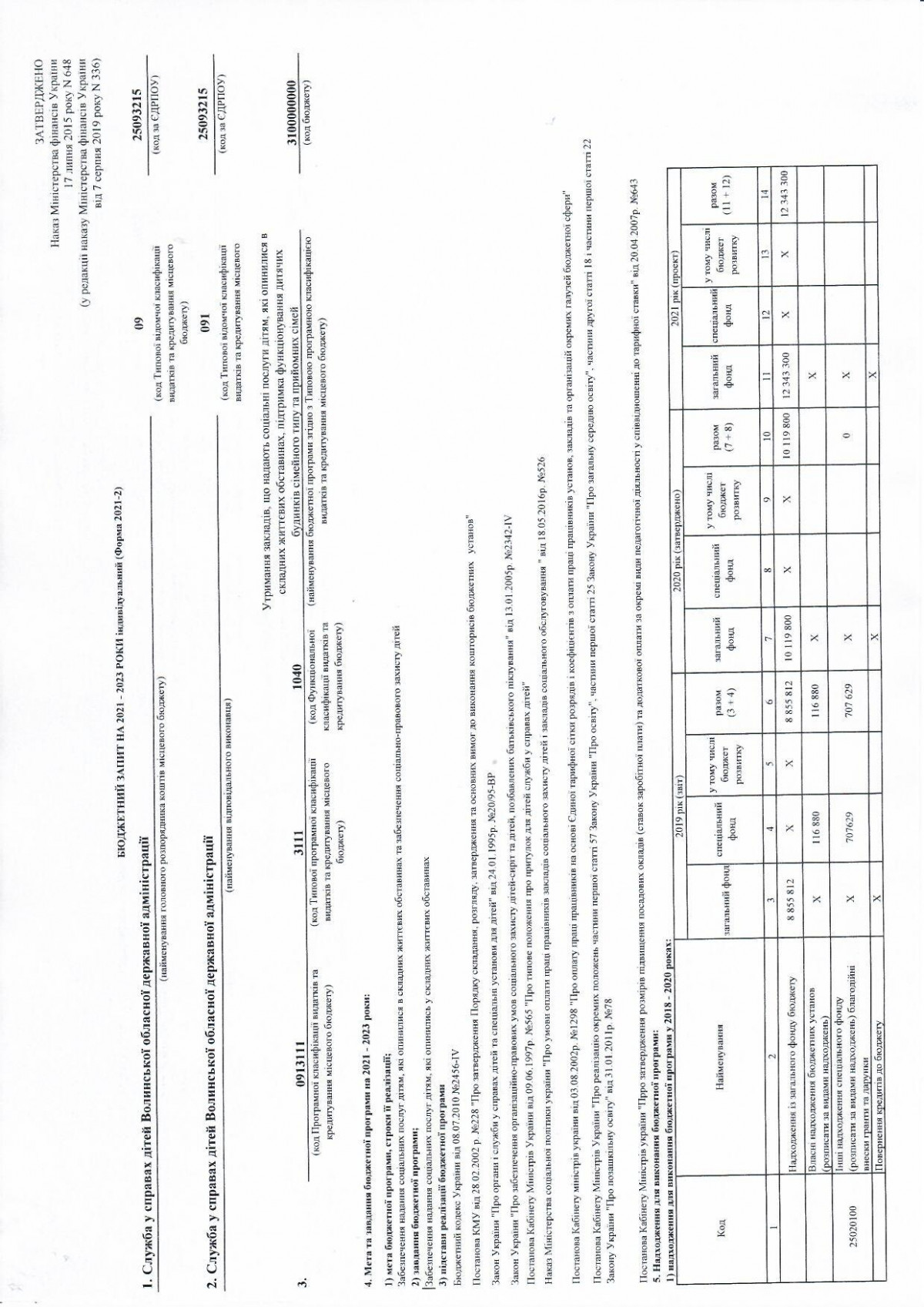 Бюджетний запит Волинської обласної державної адміністрації на 2025-2027 роки за бюджетною програмою 7731010 «Здійснення виконавчої влади у Волинській області»