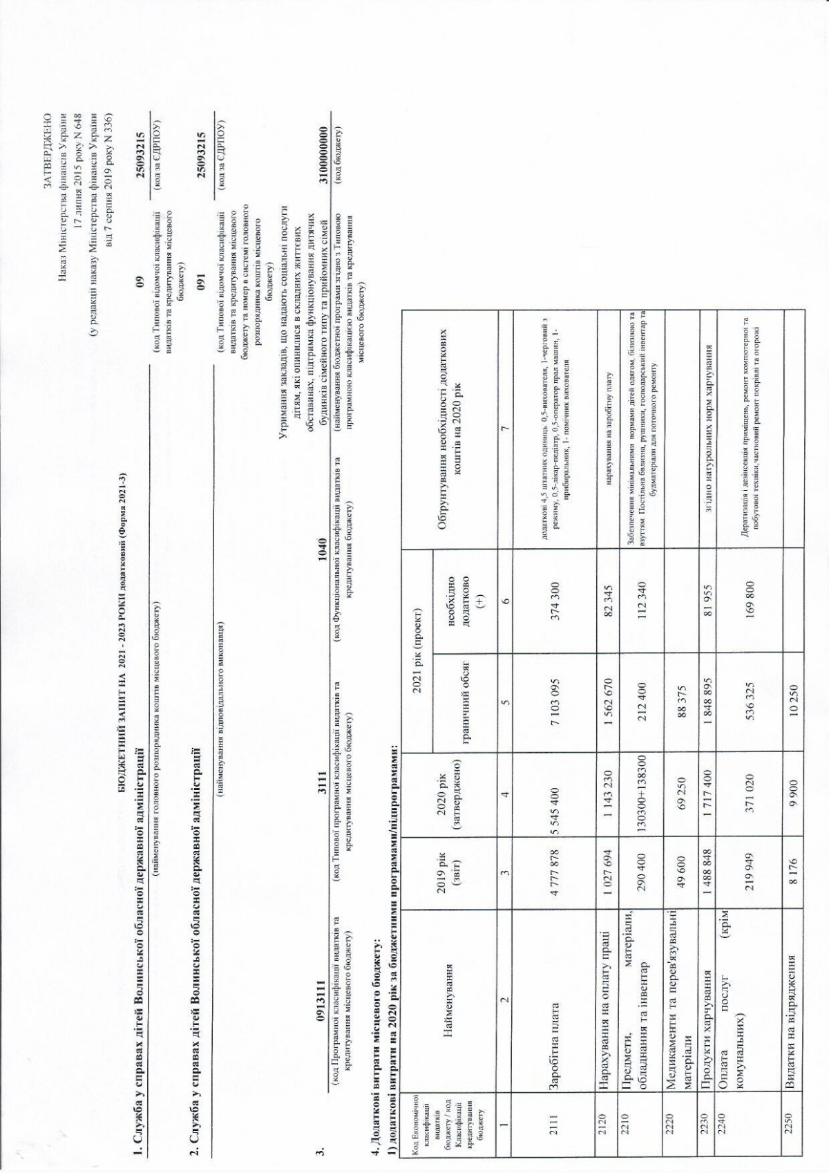 Бюджетний запит Волинської обласної державної адміністрації на 2022 рік за бюджетною програмою 7731010 «Здійснення виконавчої влади у Волинській області»