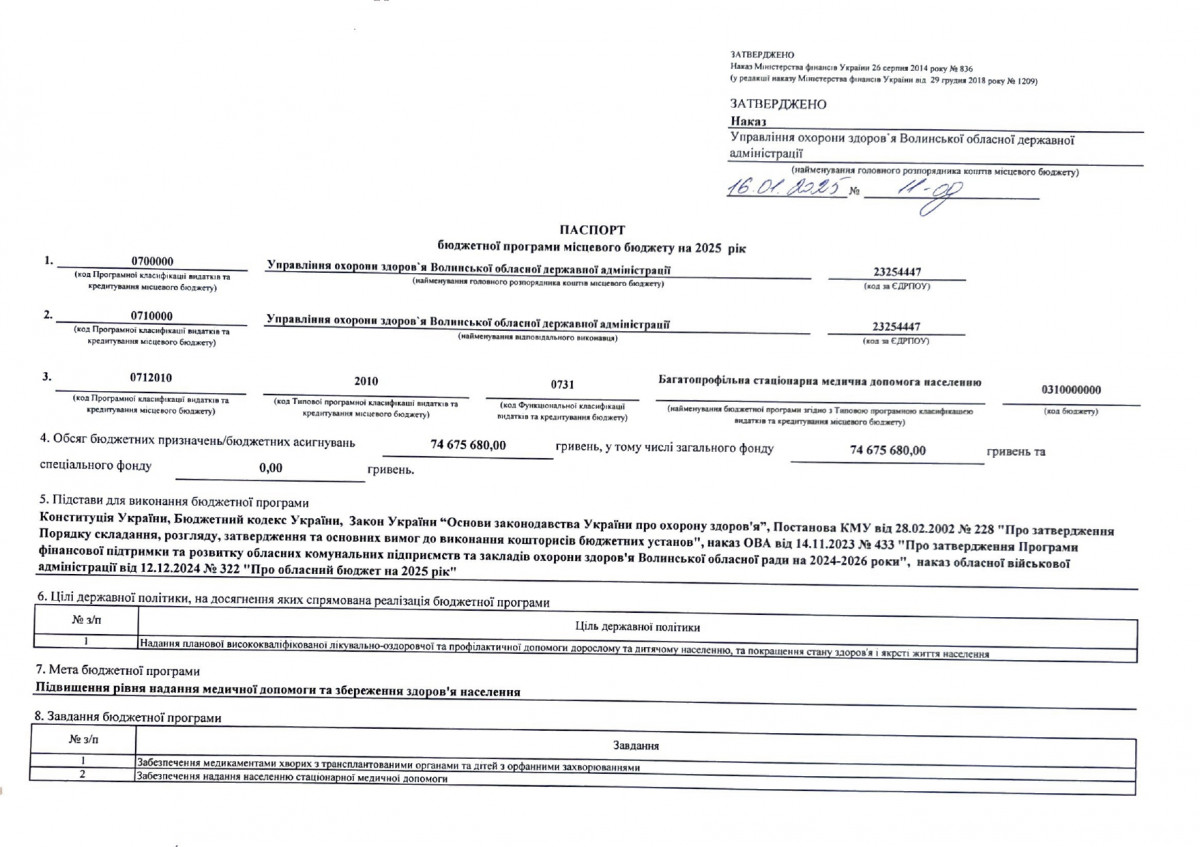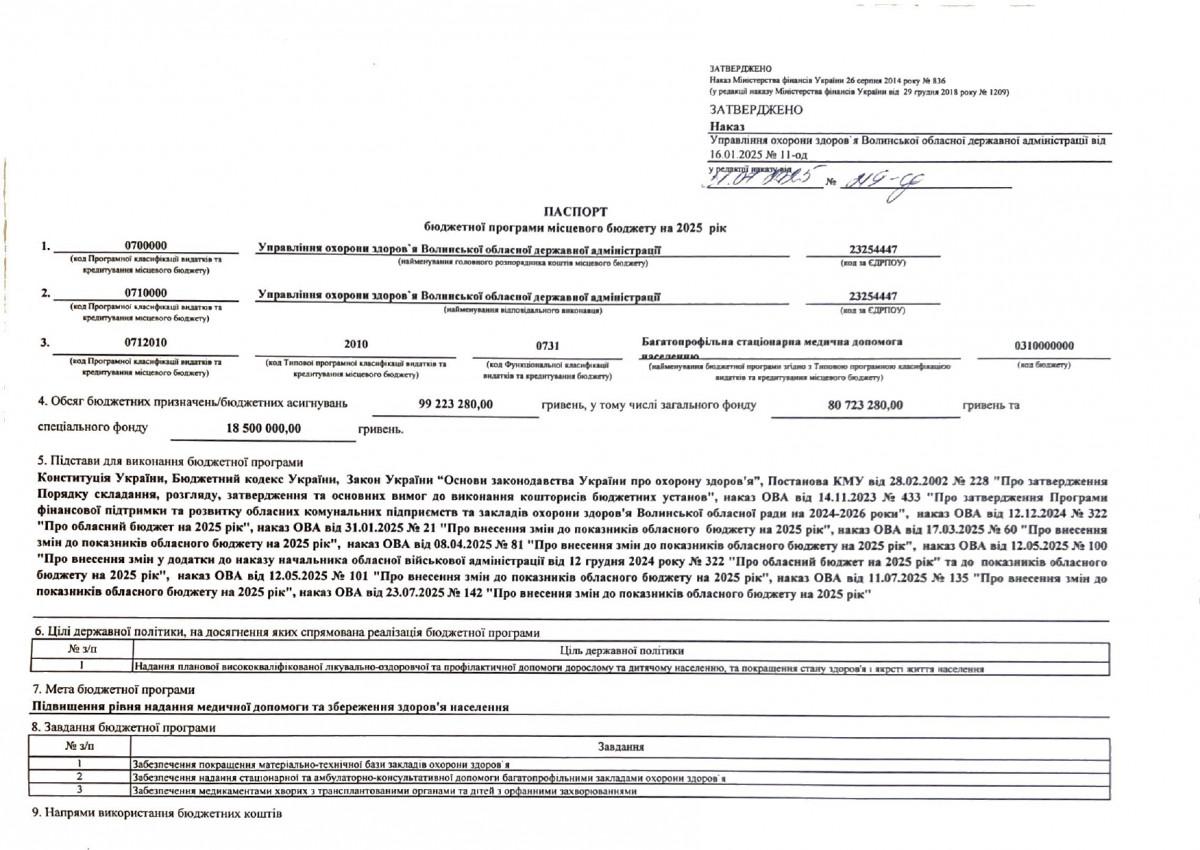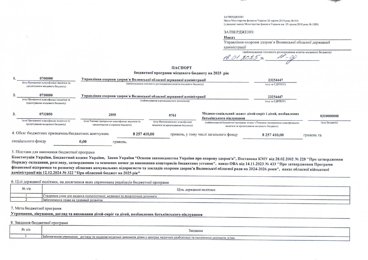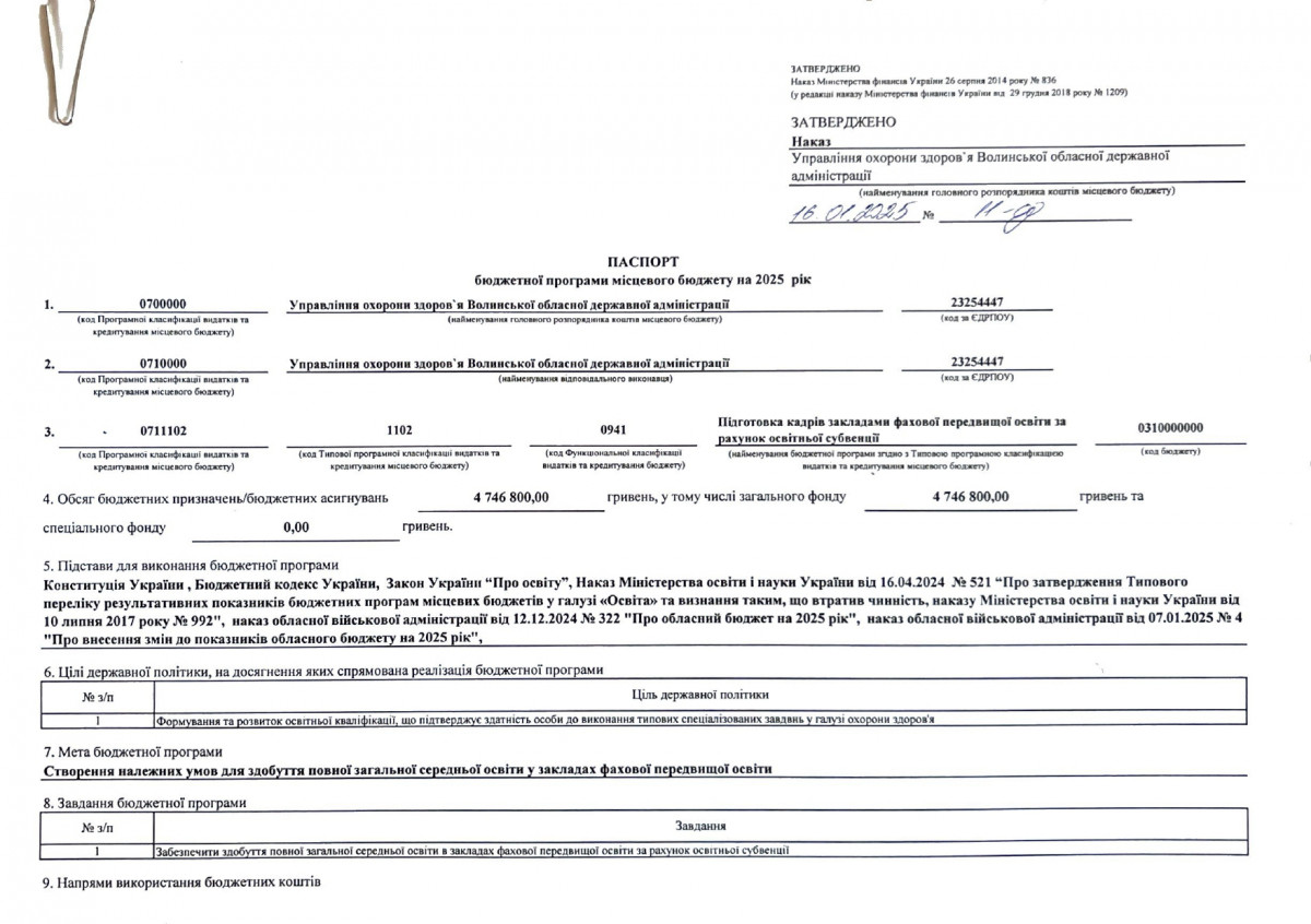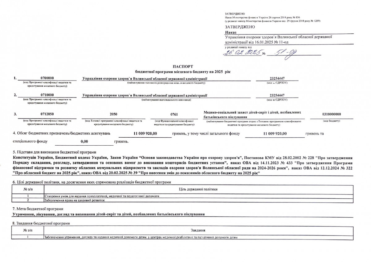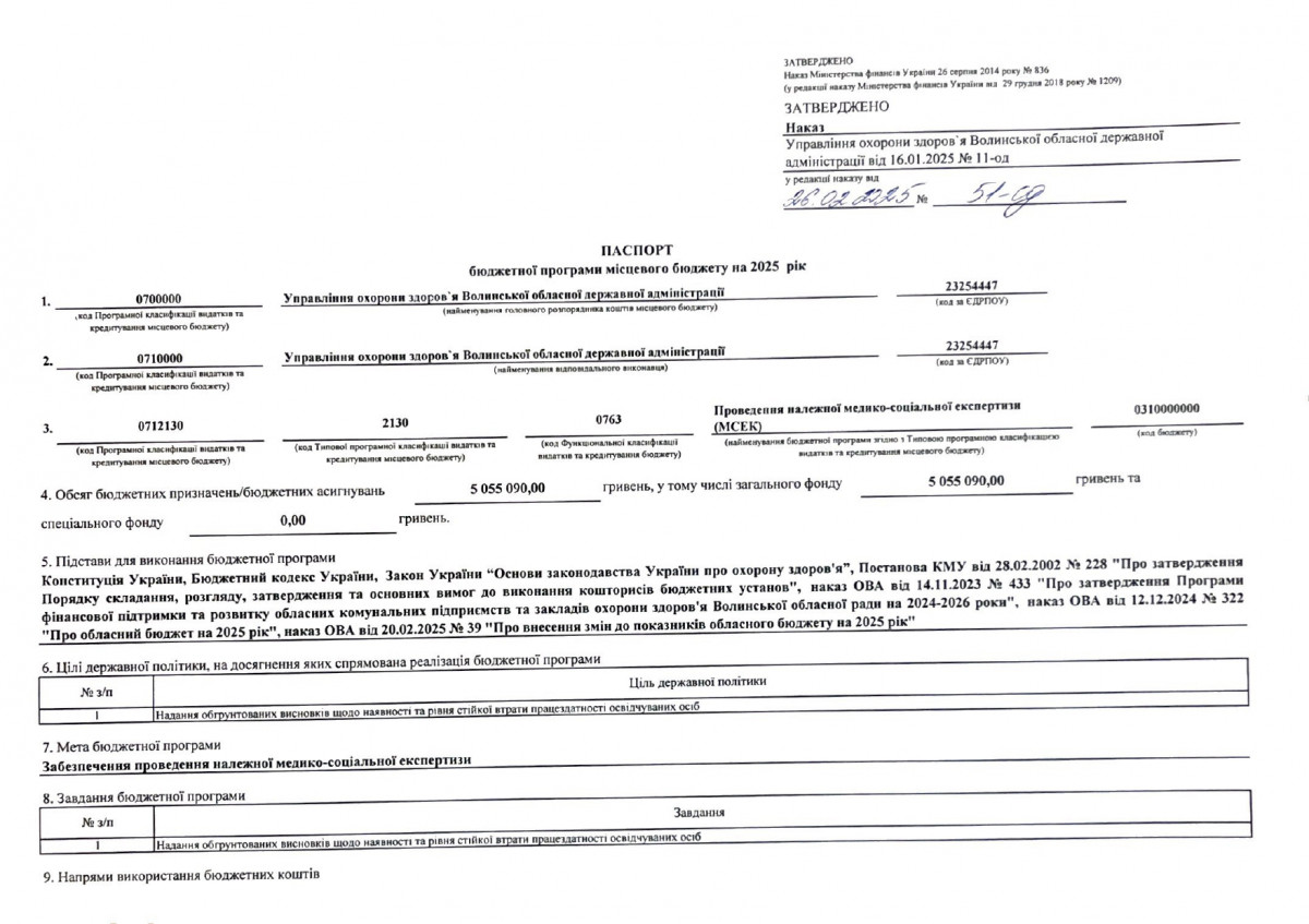 Паспорти бюджетних програм