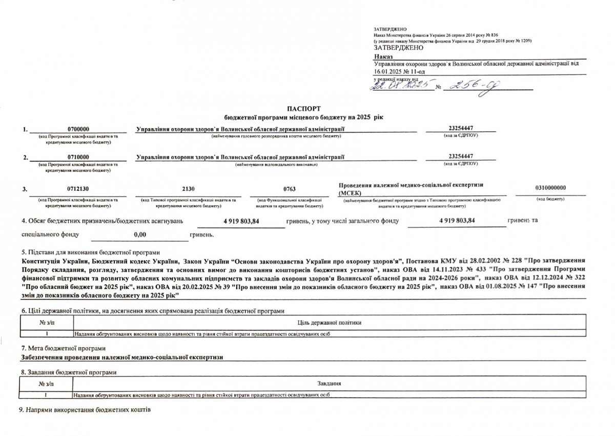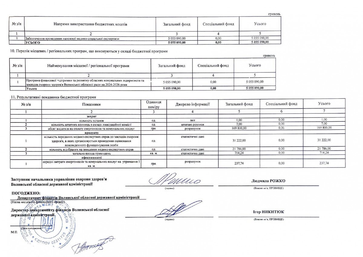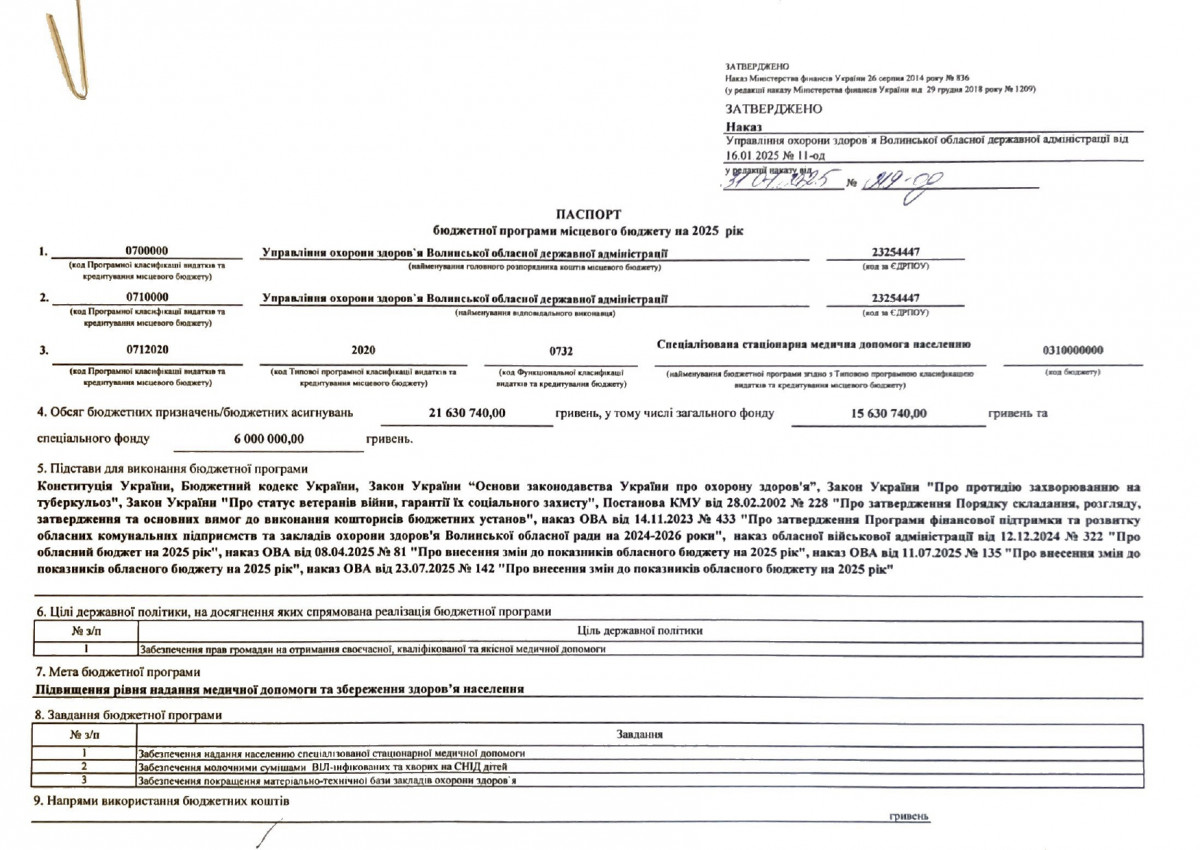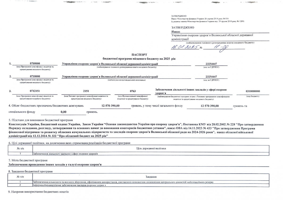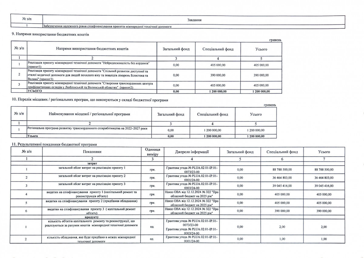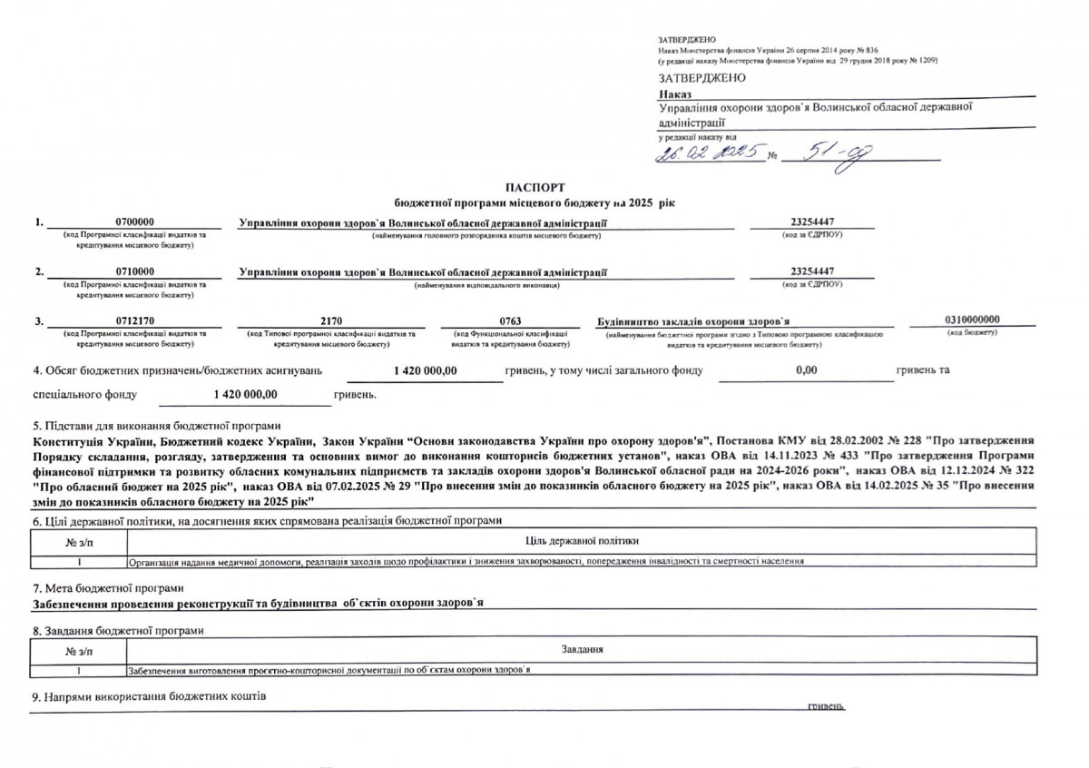Паспорти бюджетних програм