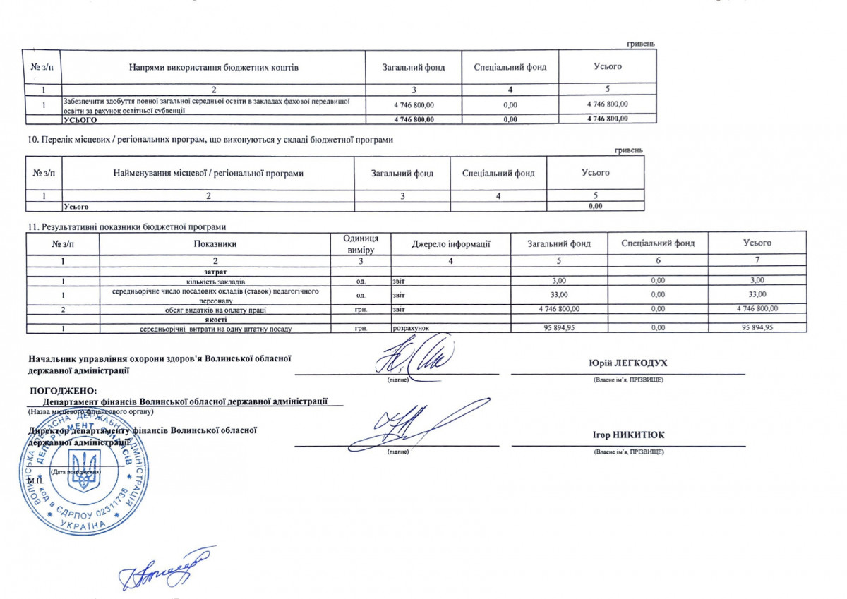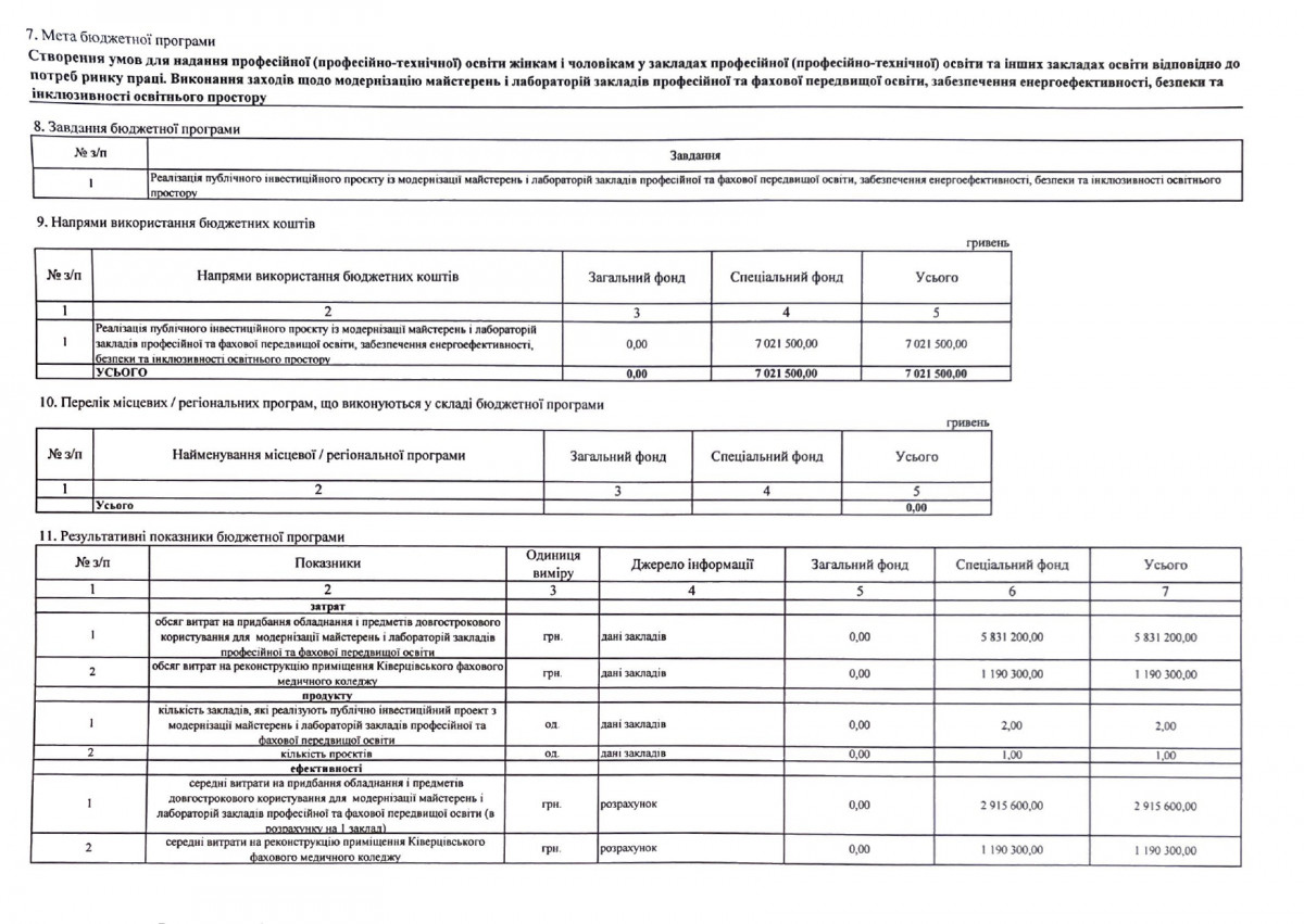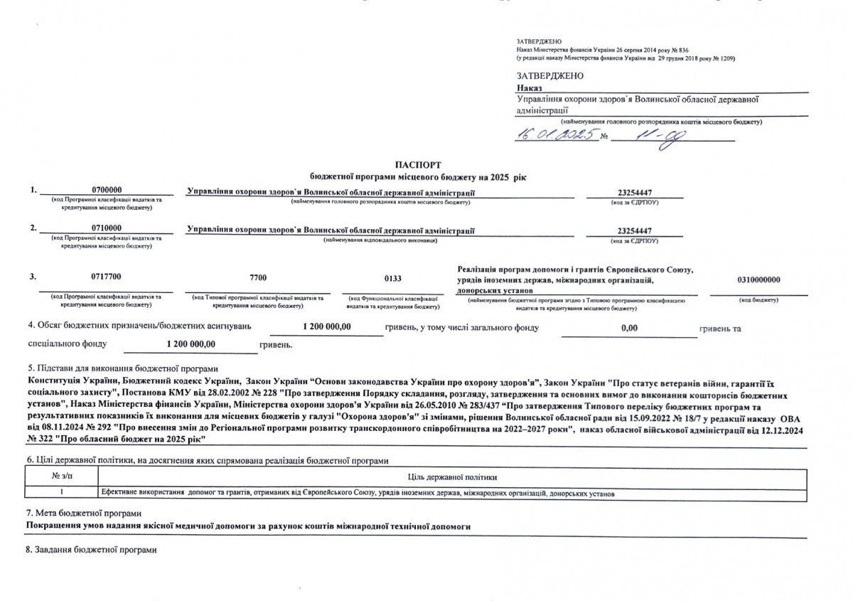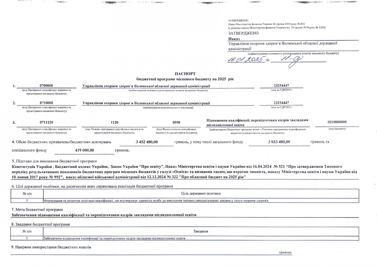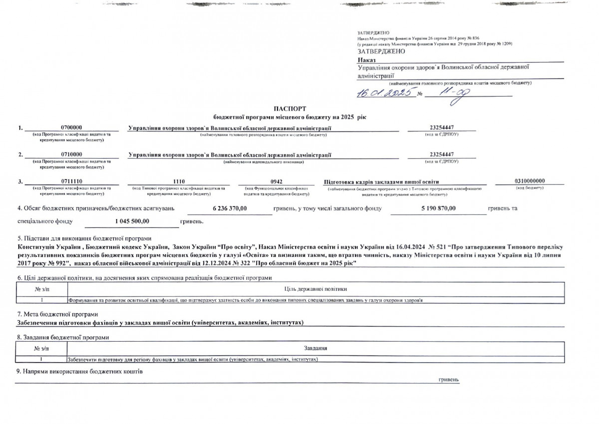 Паспорти бюджетних програм
