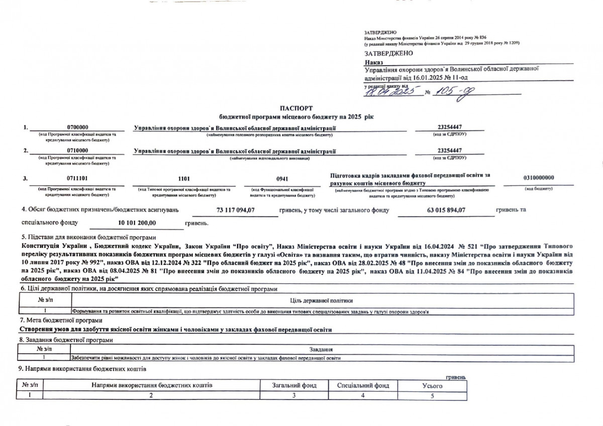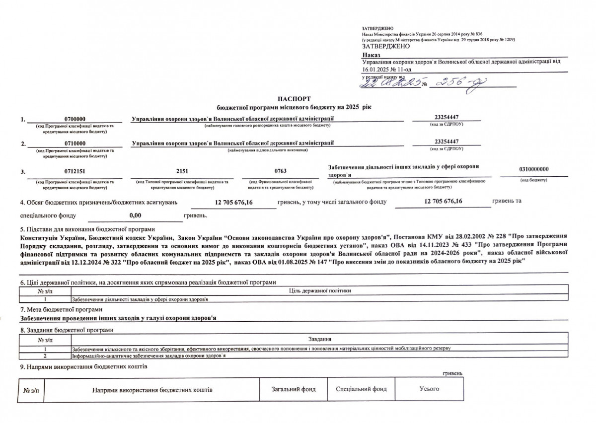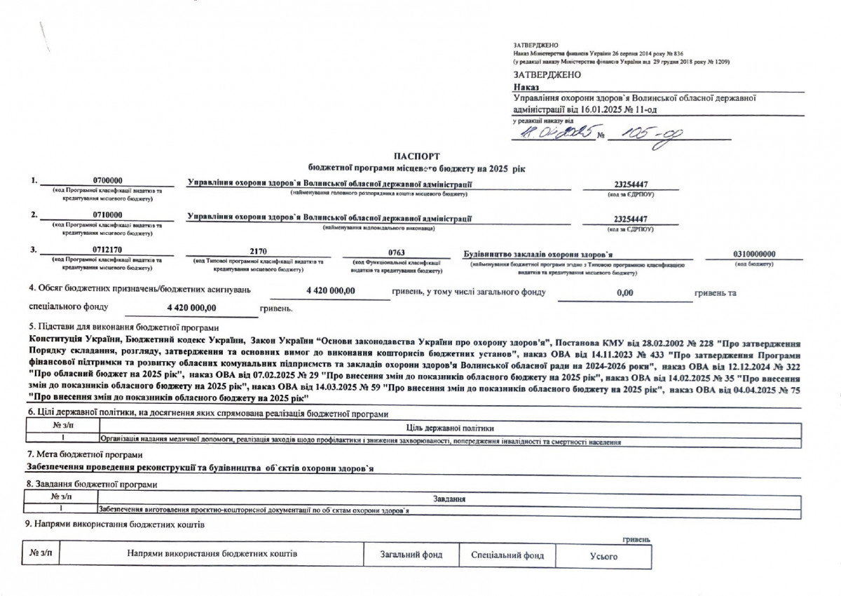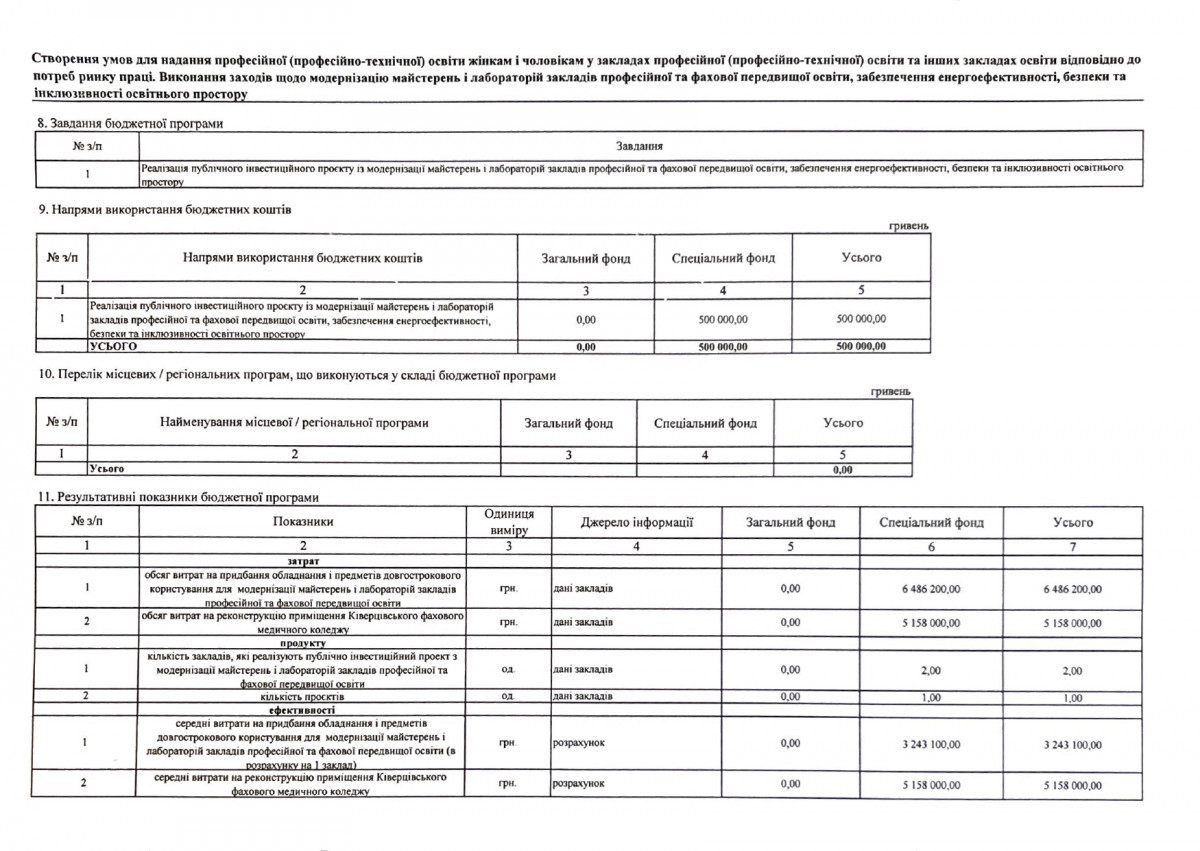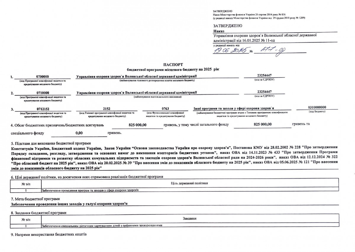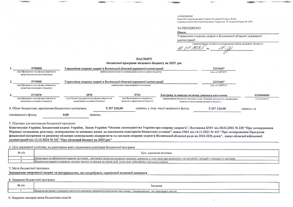Паспорти бюджетних програм