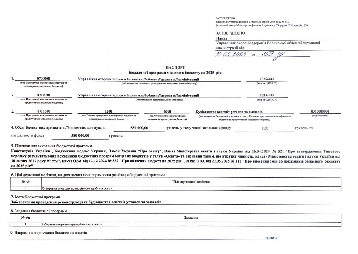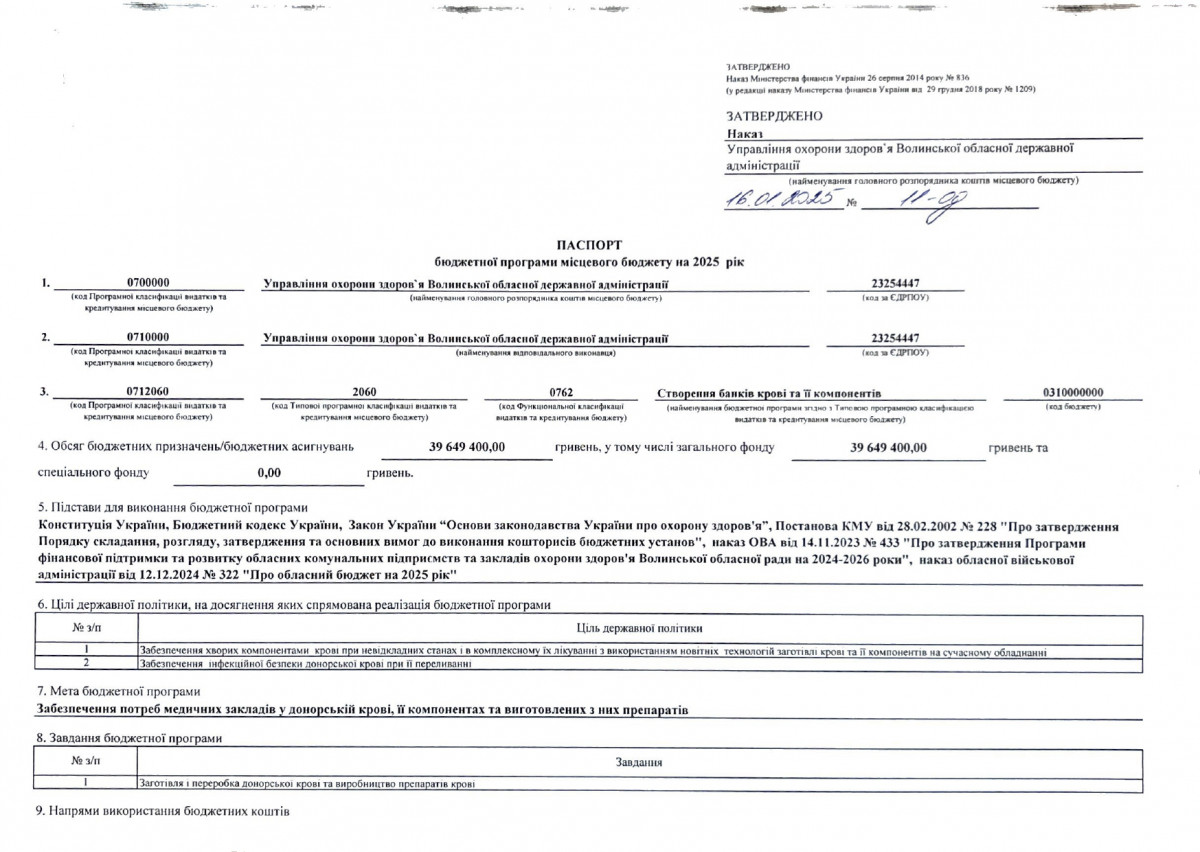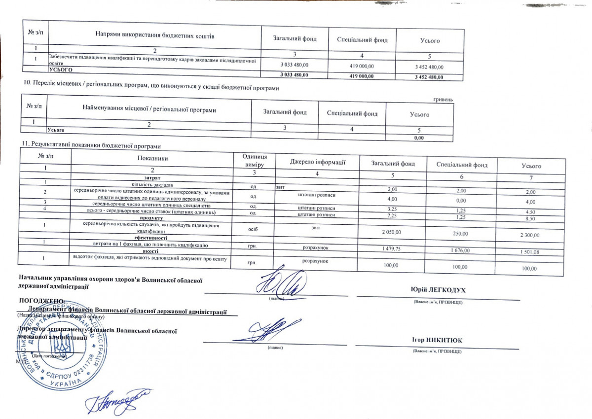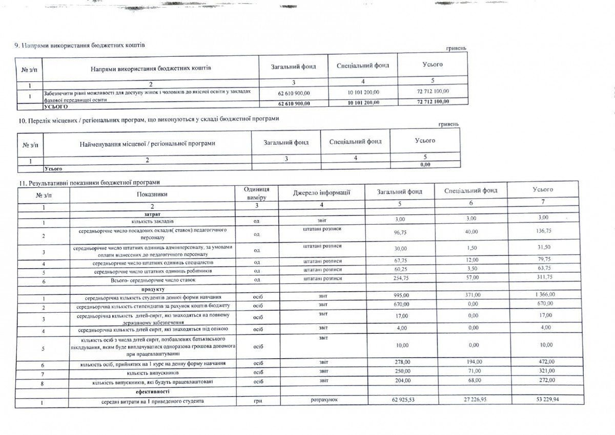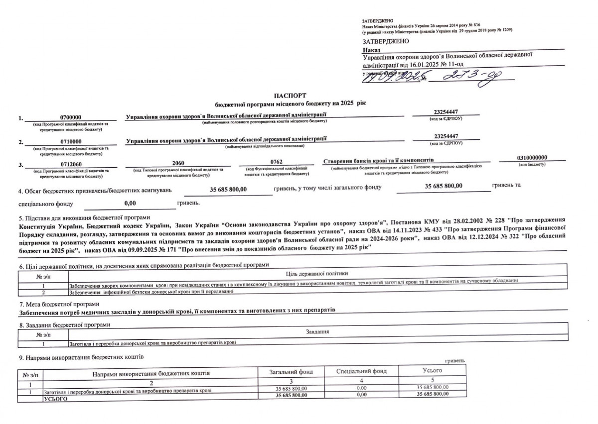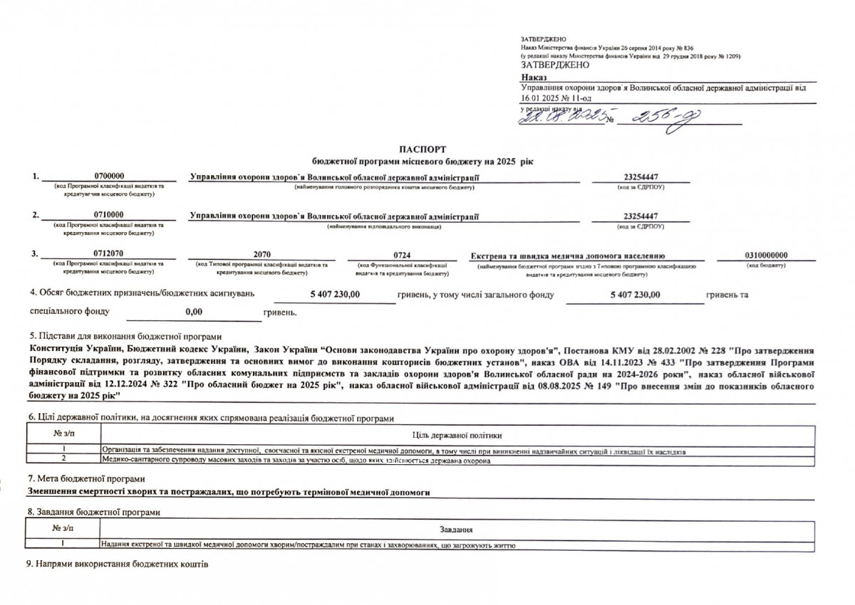 Паспорти бюджетних програм