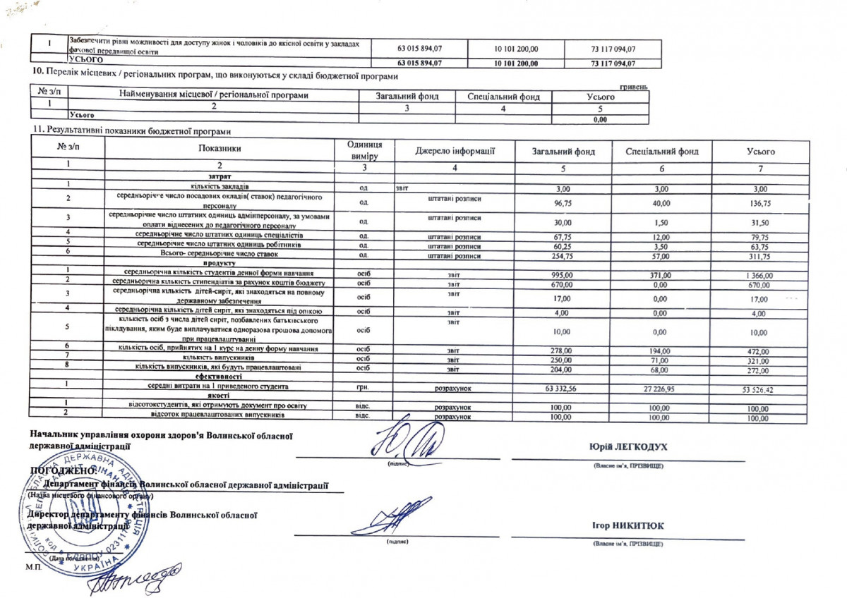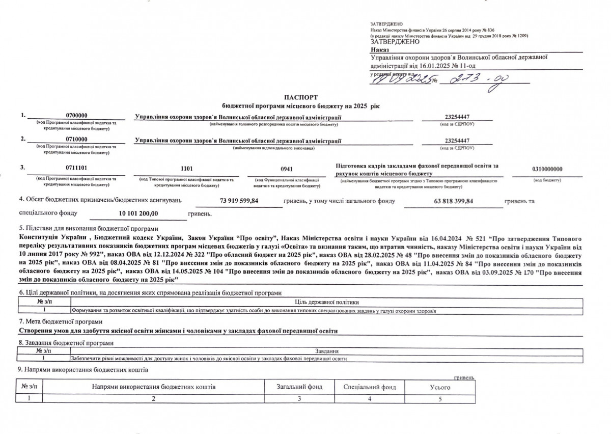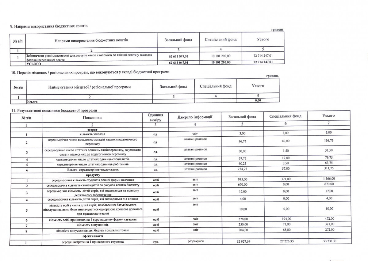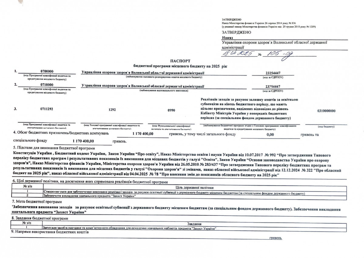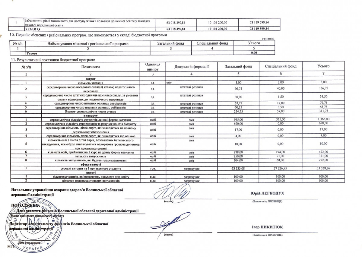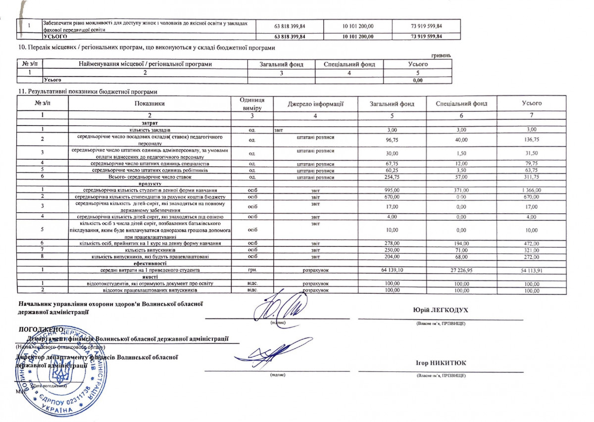 Паспорти бюджетних програм