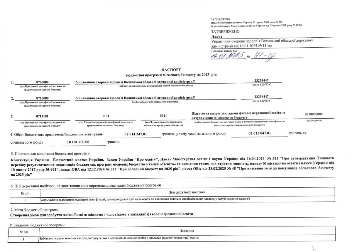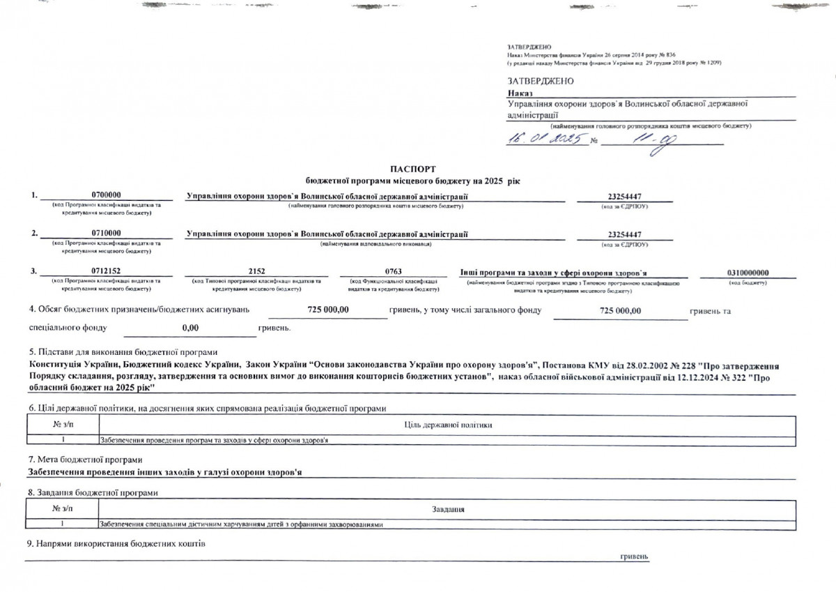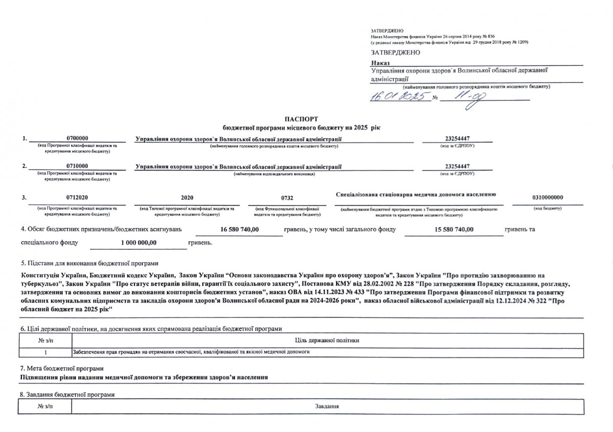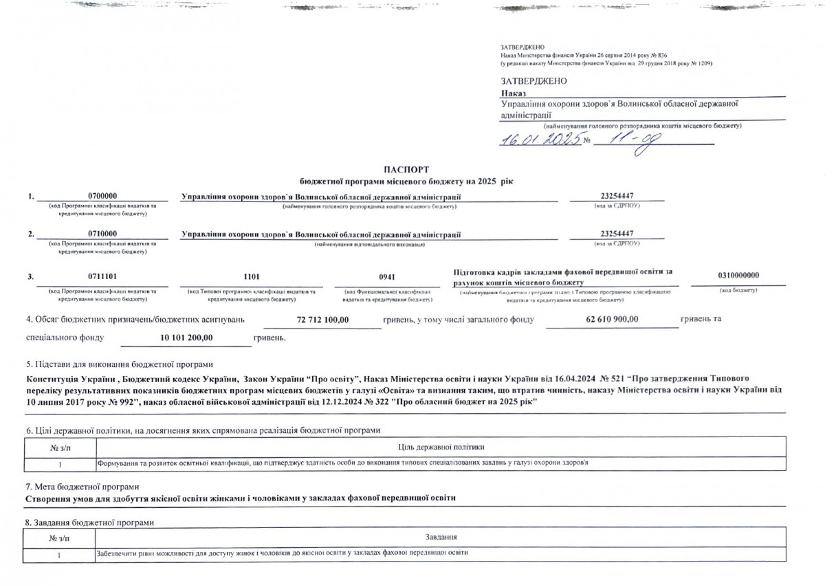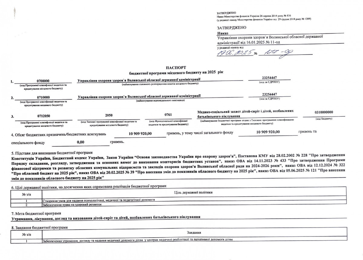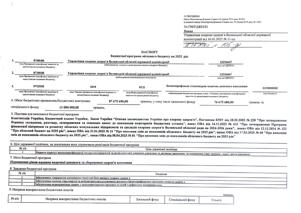 Бюджетний запит Волинської обласної державної адміністрації на 2025-2027 роки за бюджетною програмою 7731010 «Здійснення виконавчої влади у Волинській області»