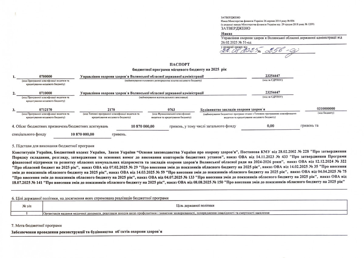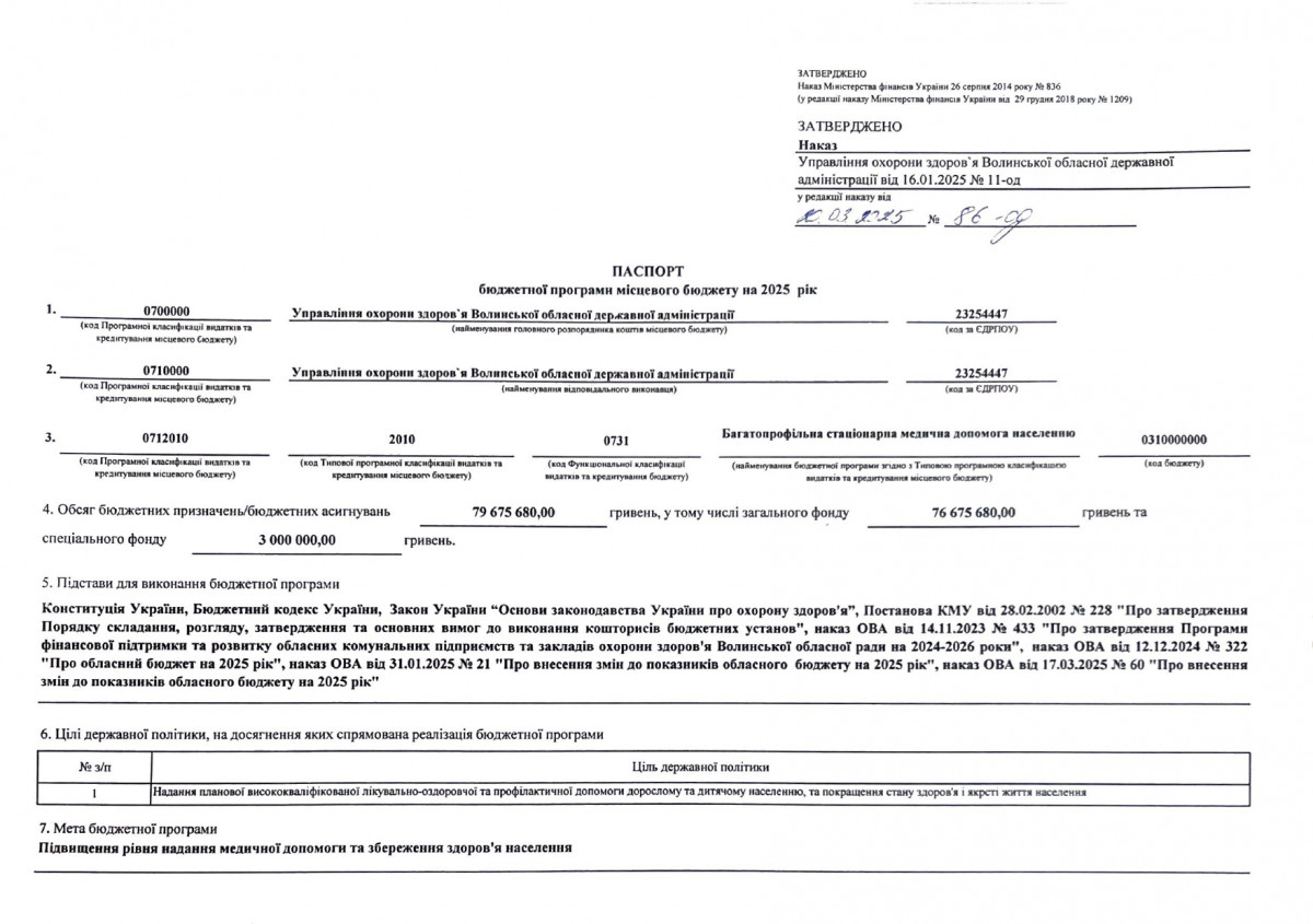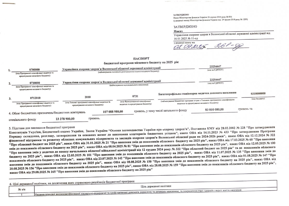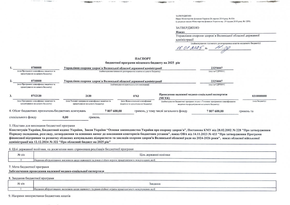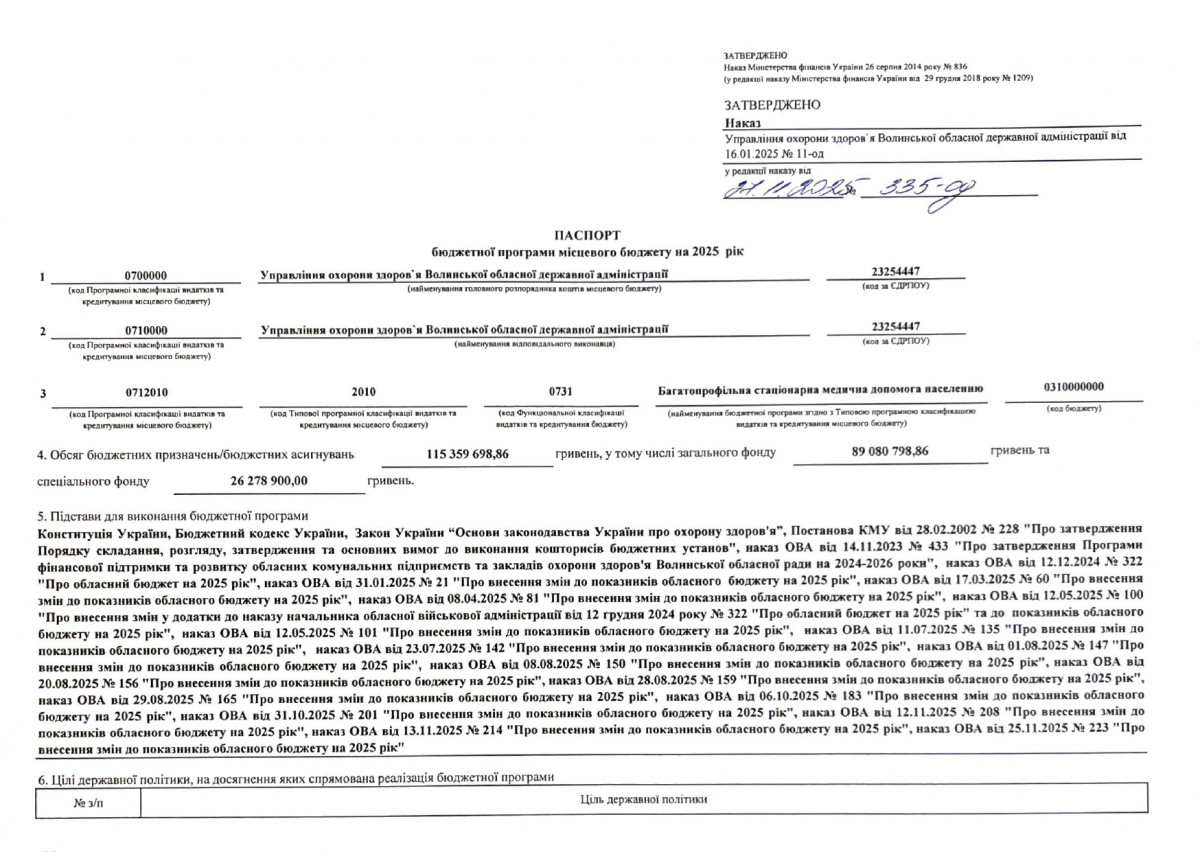 Бюджетний запит Волинської обласної державної адміністрації на 2026 рік за бюджетною програмою 7731010 «Здійснення виконавчої влади у Волинській області»