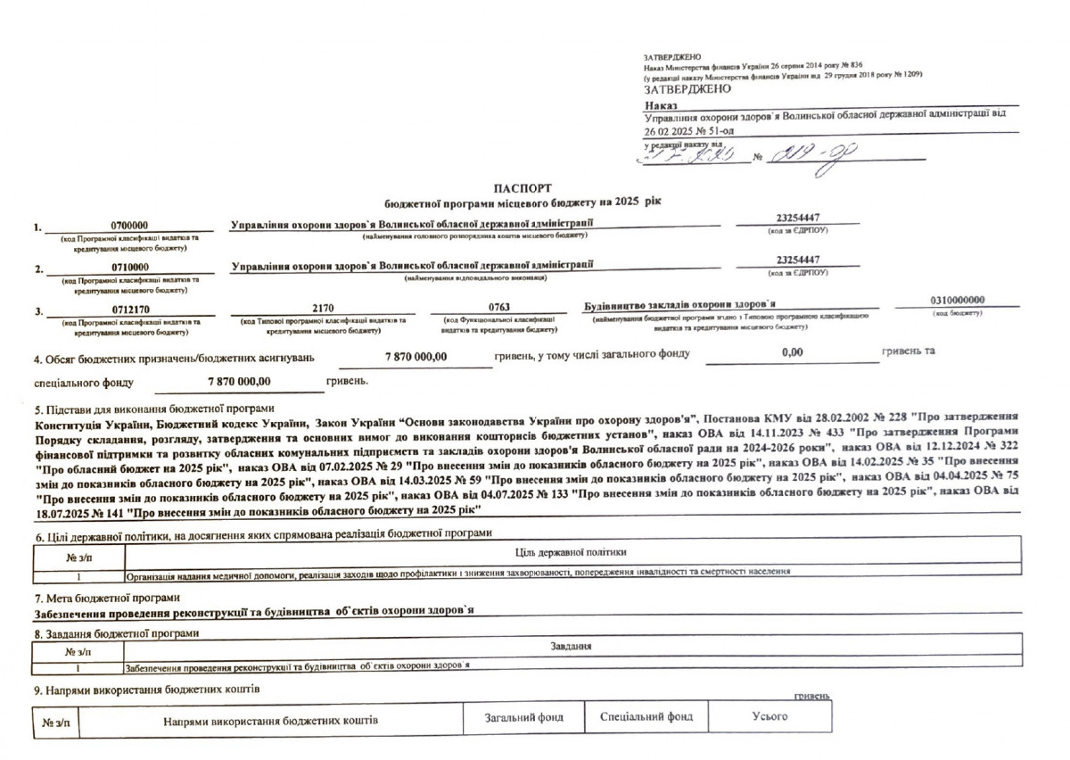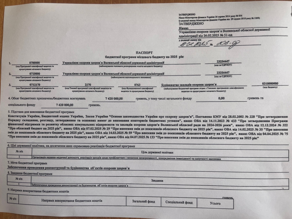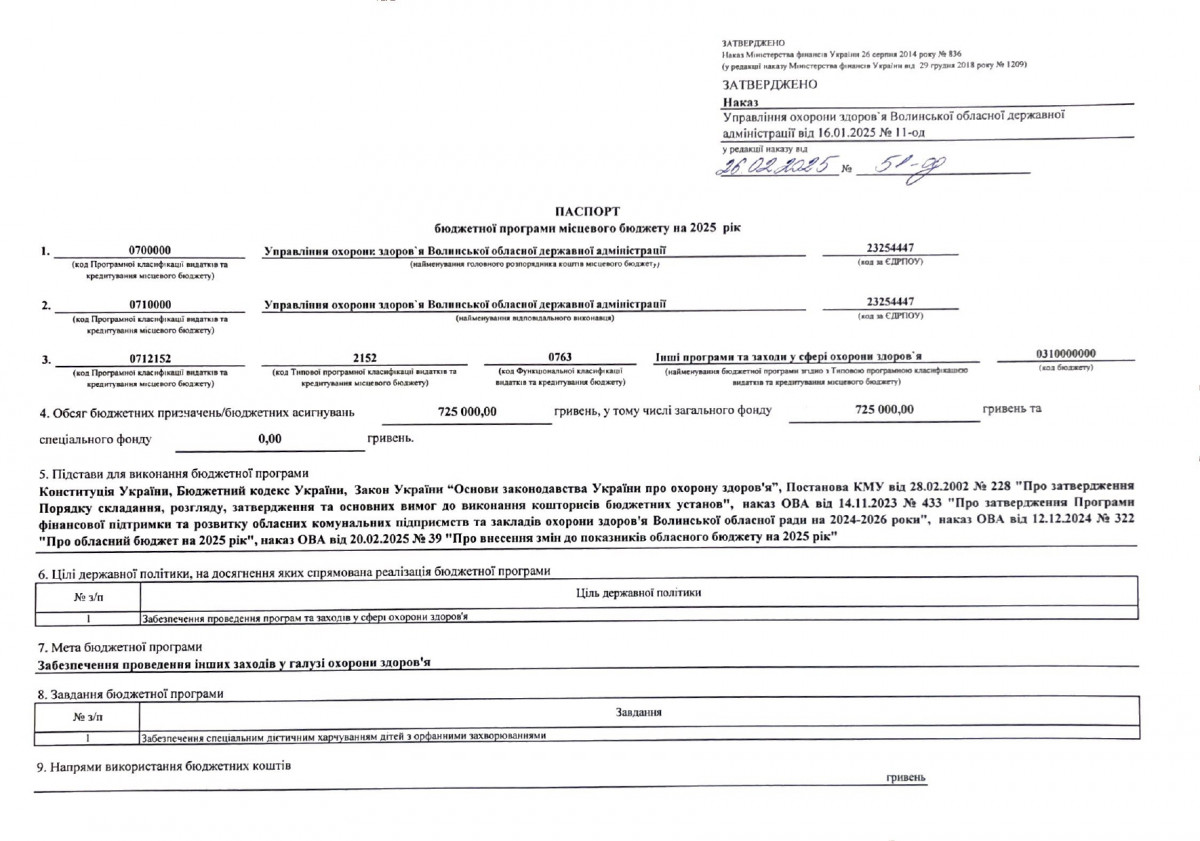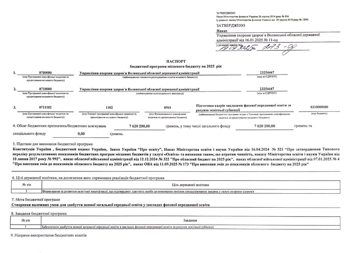 Бюджетний запит Волинської обласної державної адміністрації на 2026 рік за бюджетною програмою 7731010 «Здійснення виконавчої влади у Волинській області»