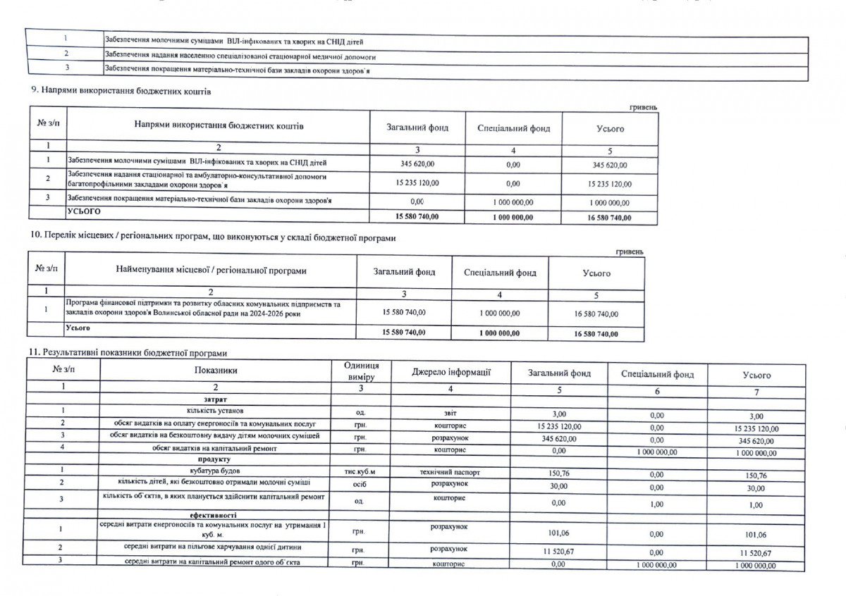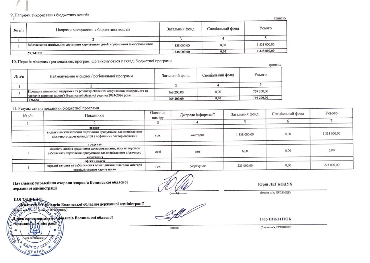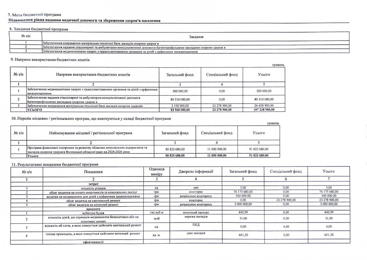 Бюджетний запит Волинської обласної державної адміністрації на 2024 рік за бюджетною програмою 7731010 «Здійснення виконавчої влади у Волинській області»
