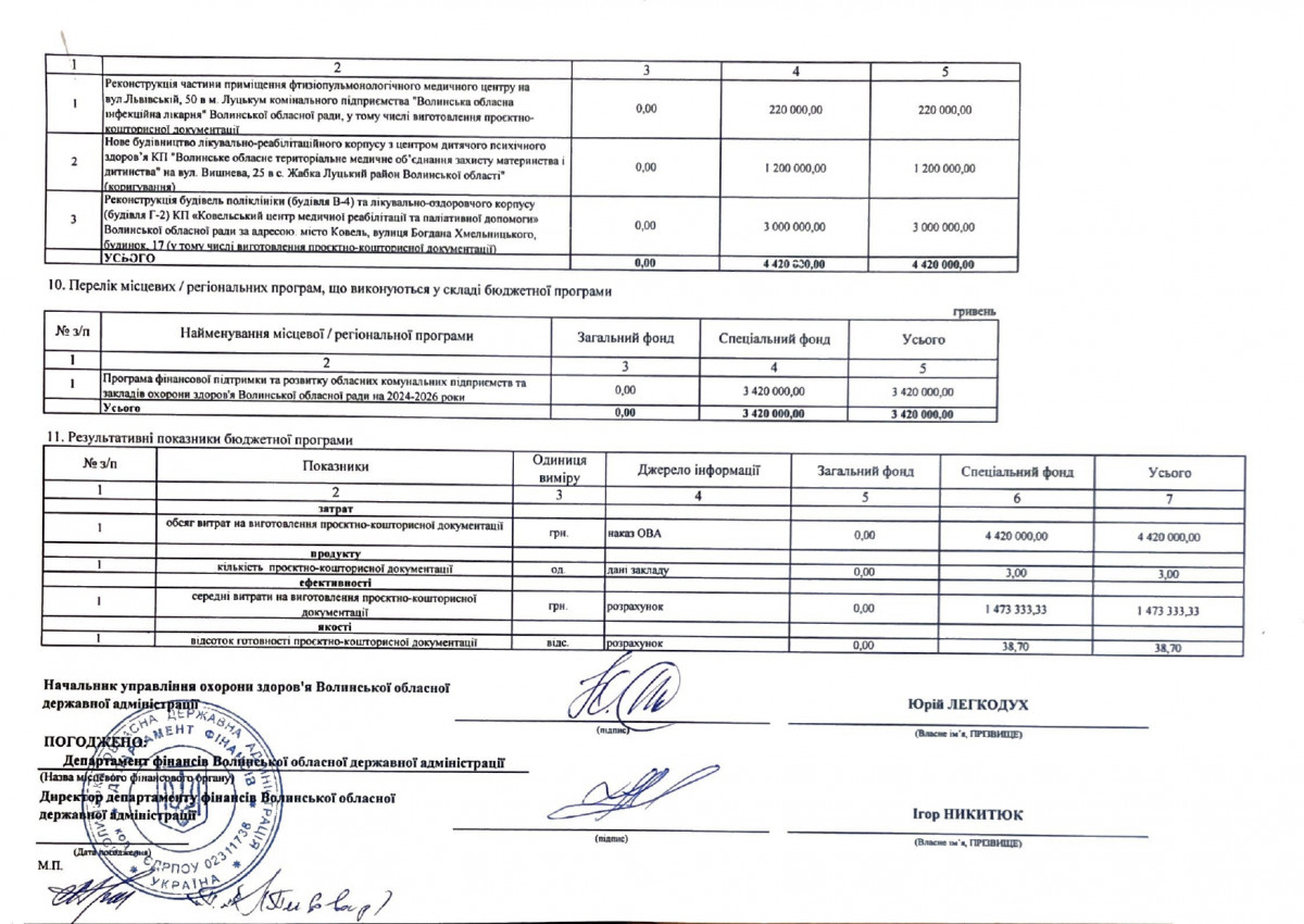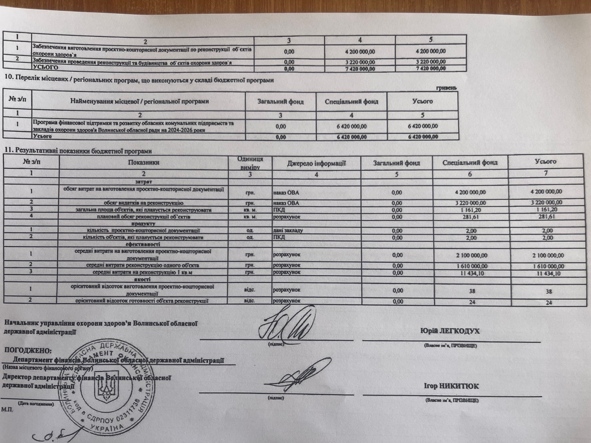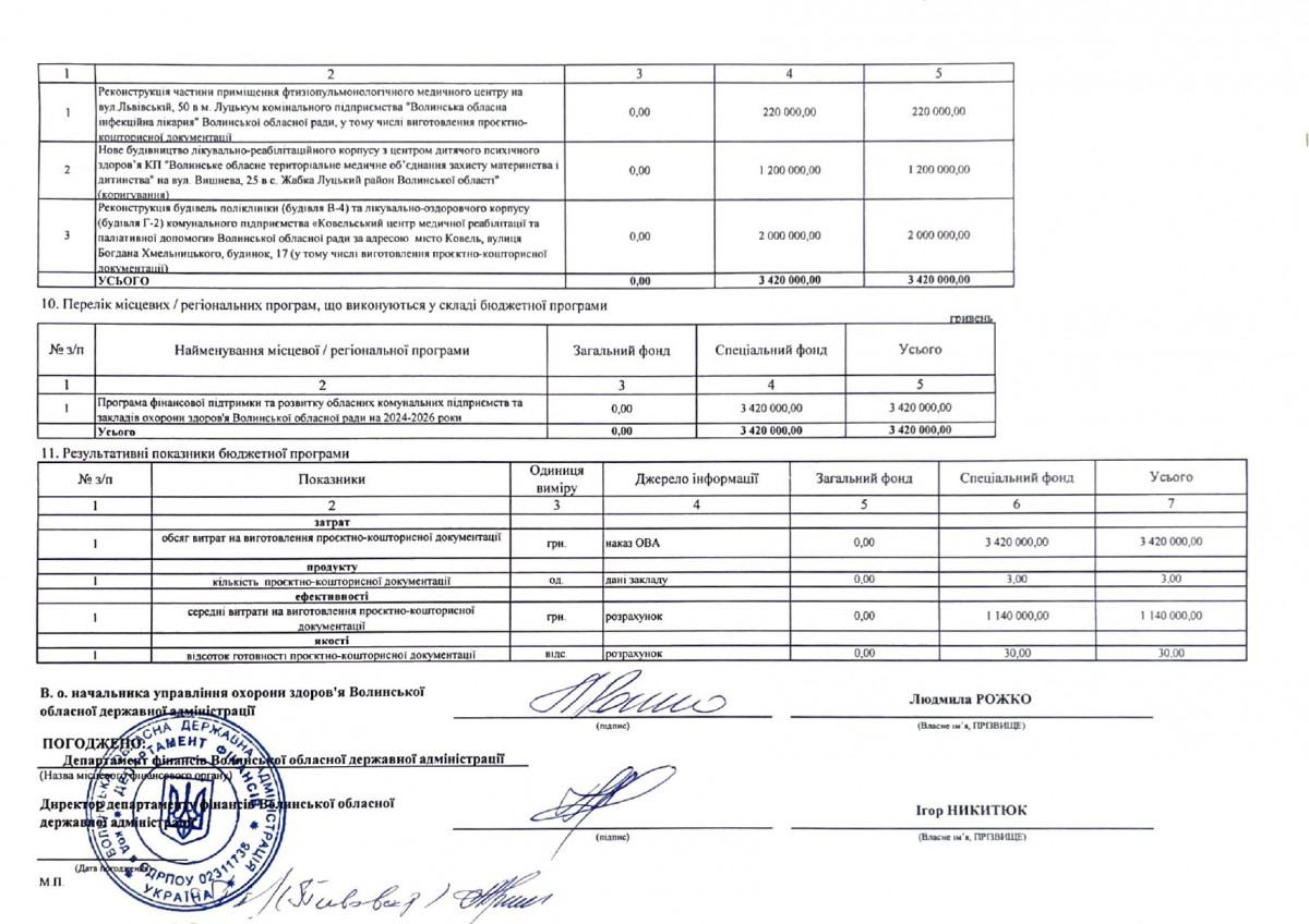 Бюджетні запити від ГРК Волинської ОДА на 2024 рік