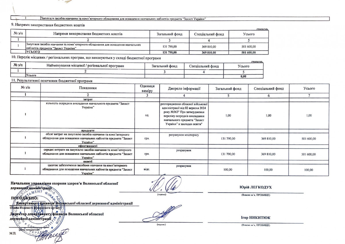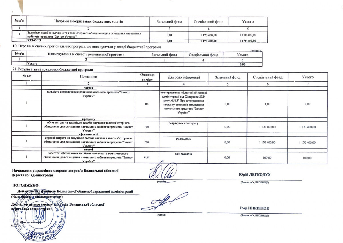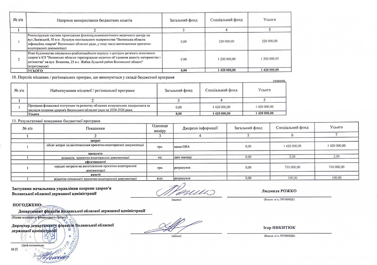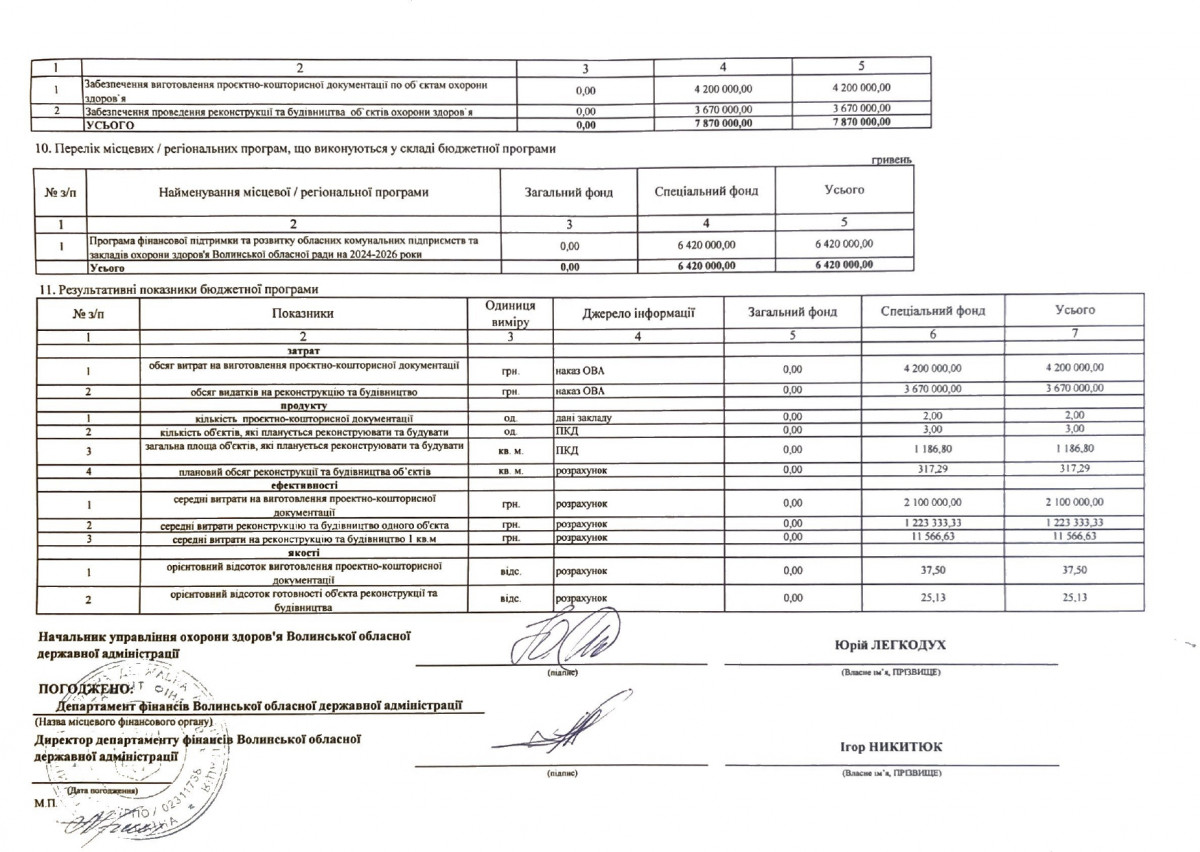 Бюджетні запити від ГРК Волинської ОДА на 2024 рік