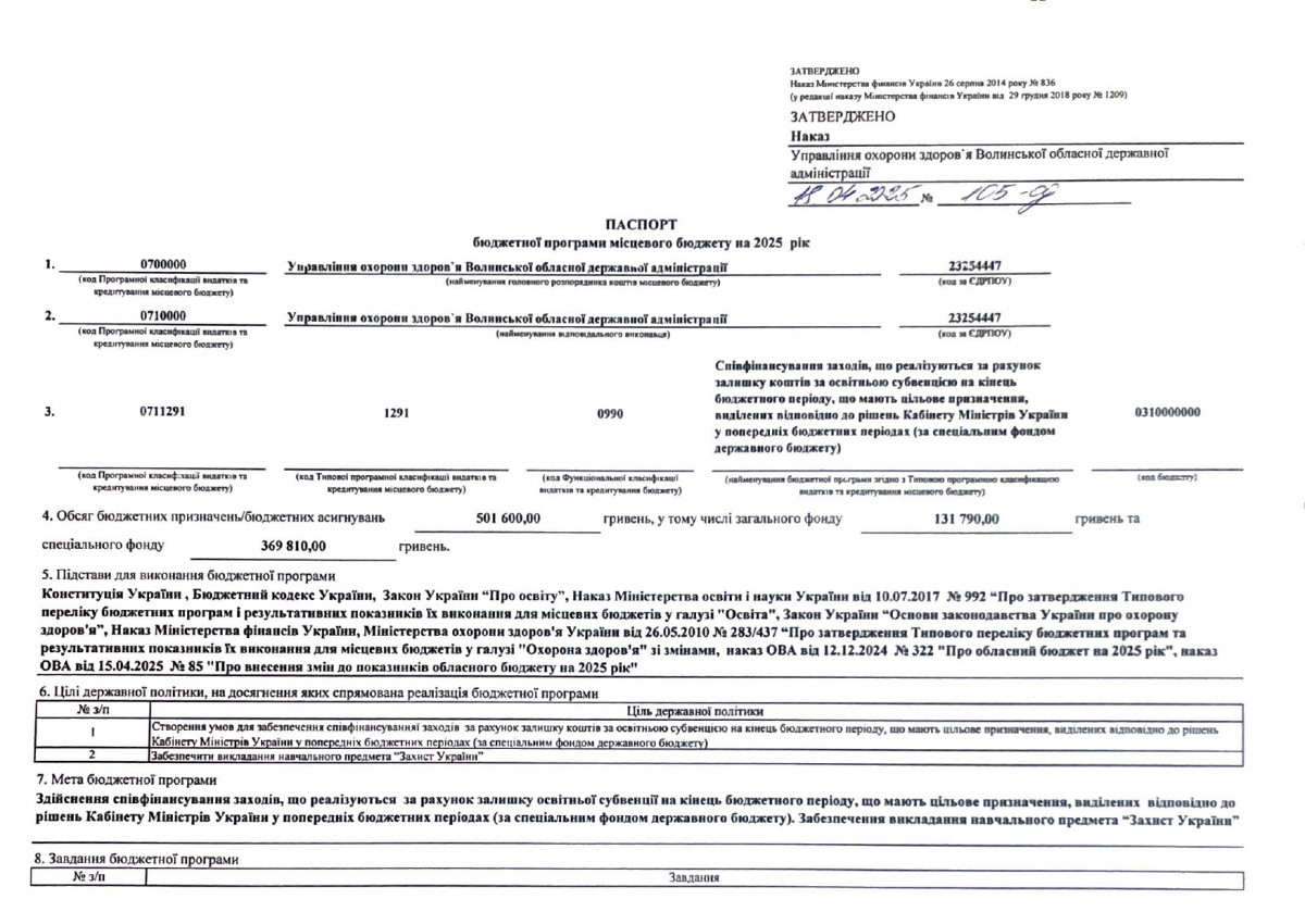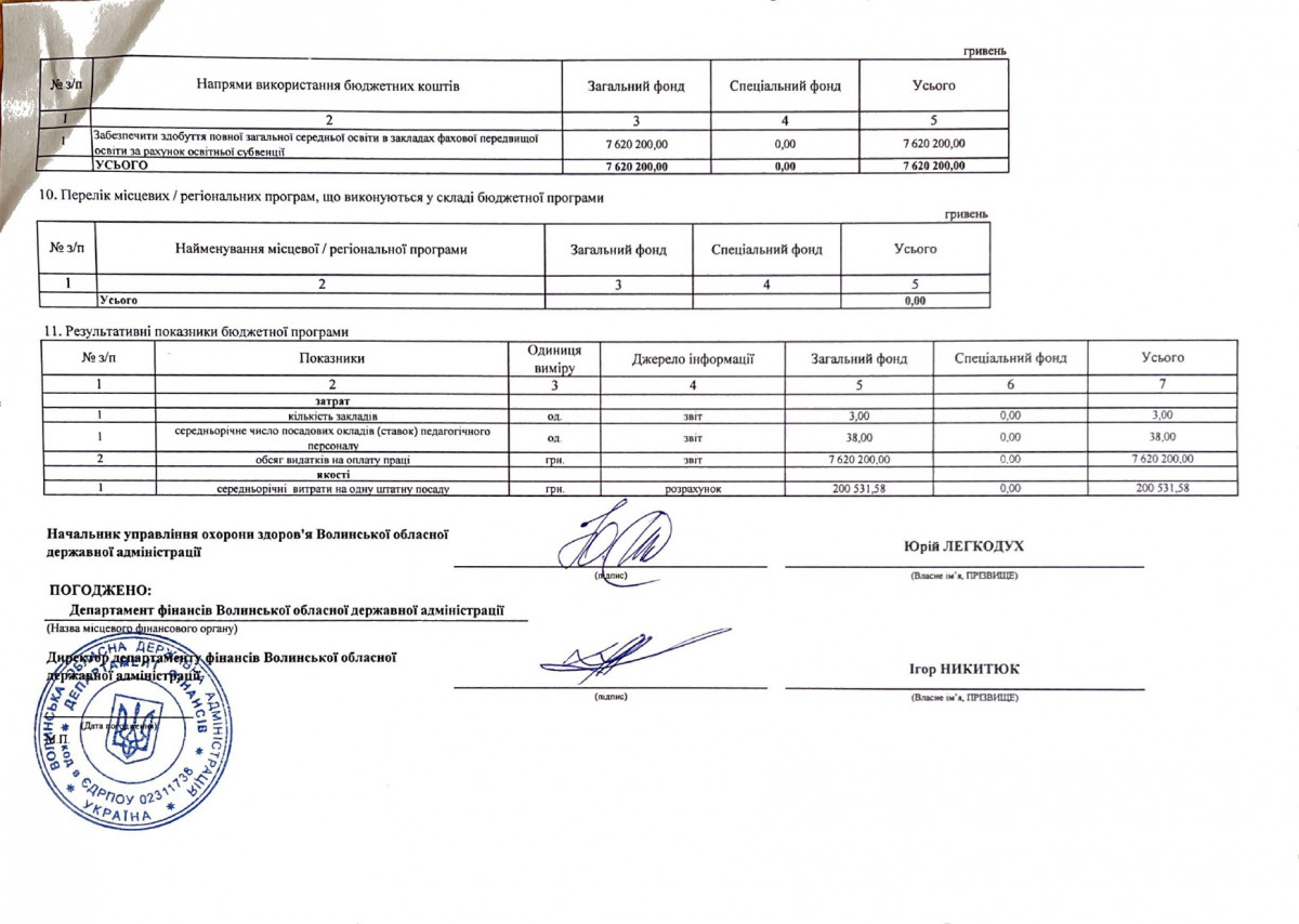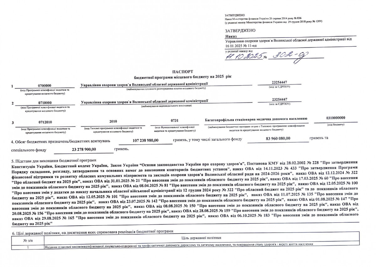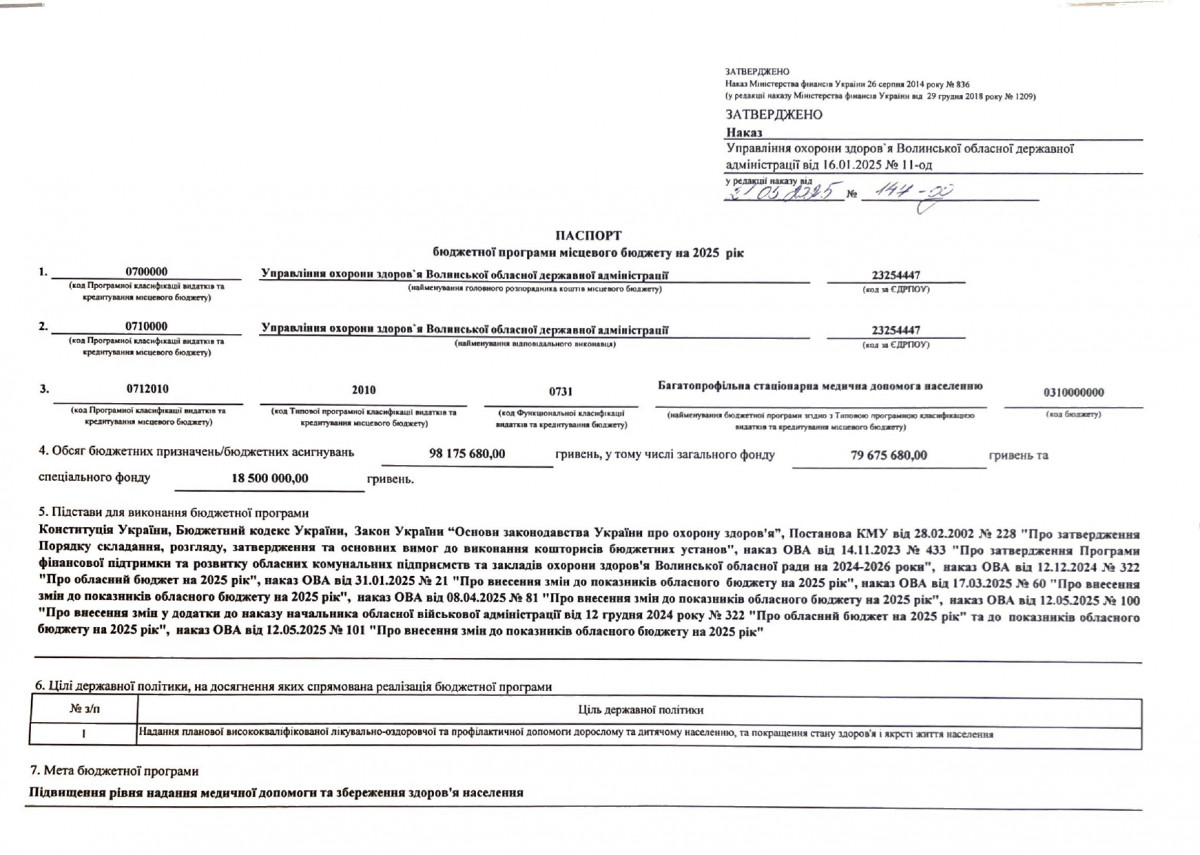 Паспорт бюджетної програми 7731010 «Здійснення виконавчої влади у Волинській області» на 2022 рік