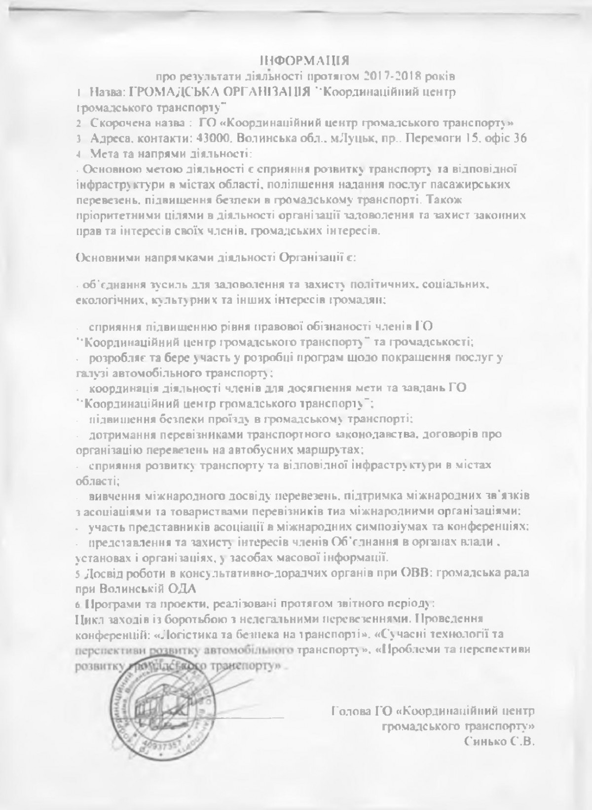 16 липня 2018, 00:42 останні оновлення: 16 липня 2018 24. ГО Координаційний центр громадського транспорту