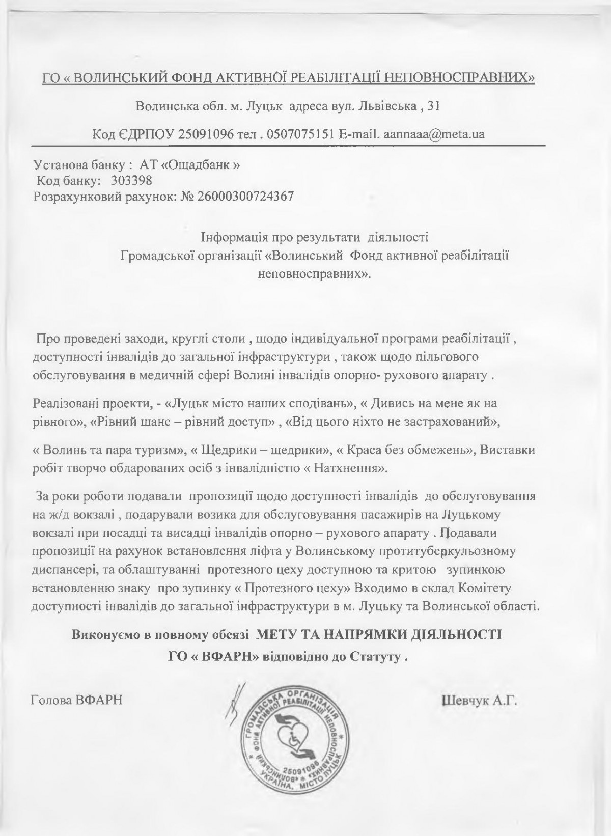 16 липня 2018, 01:13 останні оновлення: 16 липня 2018 48. ГО Волинський фонд активної реабілітації неповносправних