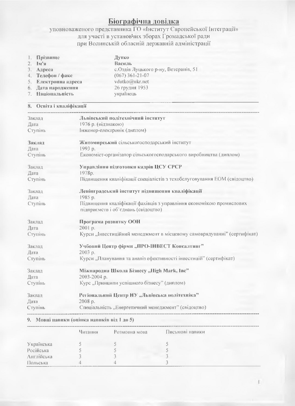 Список кандидатів до складу Громадської ради, які братимуть участь в установчих зборах