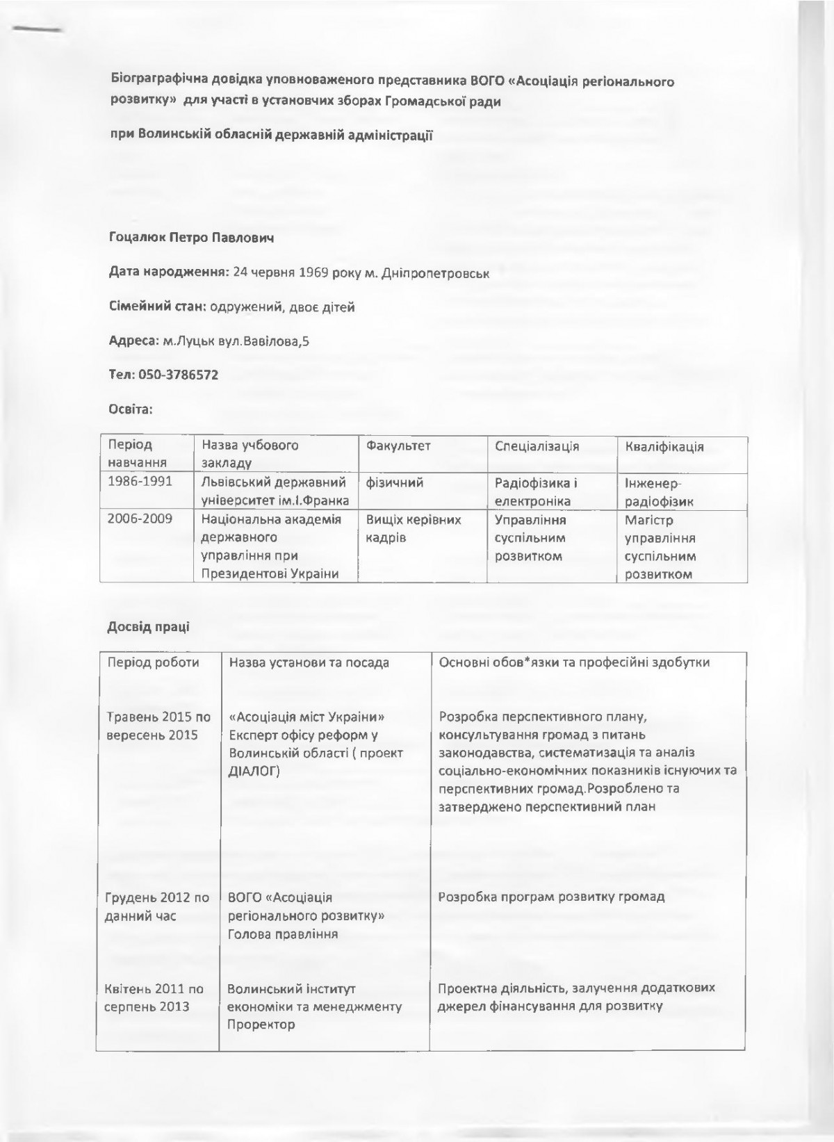 Список кандидатів до складу Громадської ради, які братимуть участь в установчих зборах