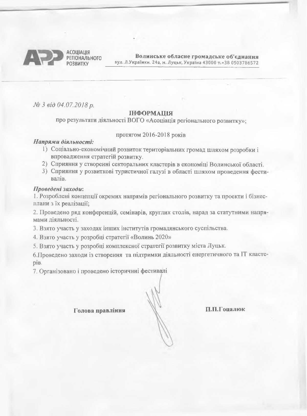 План заходів на 2018-2020 роки з реалізації Стратегії розвитку Волинської області