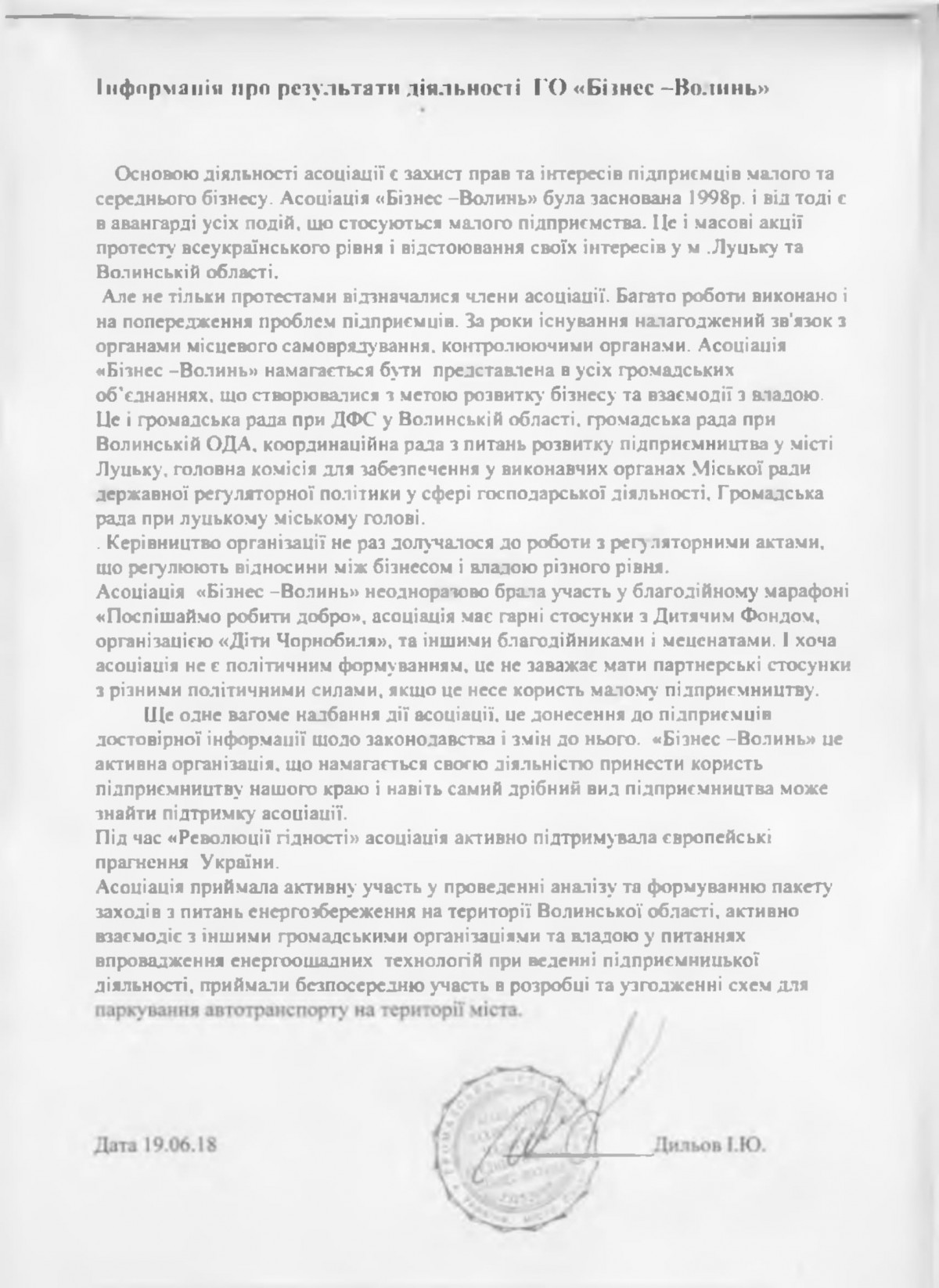 15 липня 2018, 23:07 останні оновлення: 16 липня 2018 9. Громадська організація "Асоціація захисту прав малого та середнього бізнесу "Бізнес-Волинь"