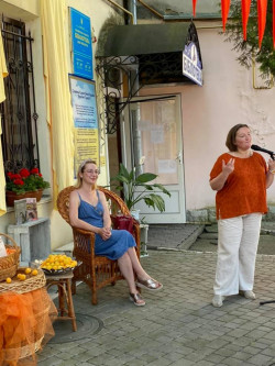 Щасливим та насиченим зробила це свято для читачів бібліотеки запрошена гостя, письменниця Ореста Осійчук, яка розповідала про свою книгу «АЙХО, або Подорож до початку» та презентувала нове видання «Абрикосова книгарня». Знайомство з письменницею, презентація її книг пройшли в атмосфері невимушеності, активного спілкування з підлітками (і не тільки), які люблять читати і – не дуже, але люблять природу, цікаві історії, пригоди та абрикоси.