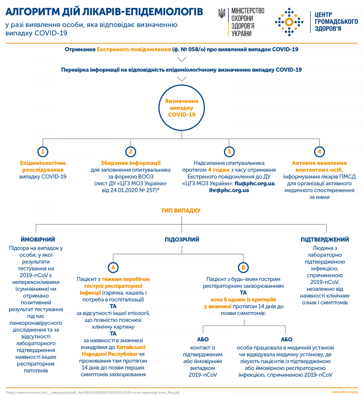 - алгоритм дій лікарів-епідеміологів при виявленні особи, яка відповідає визначенню випадку СОVID-19