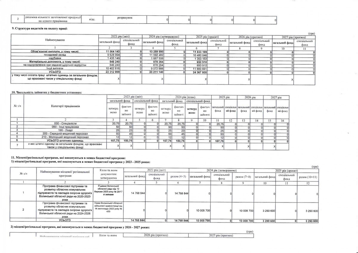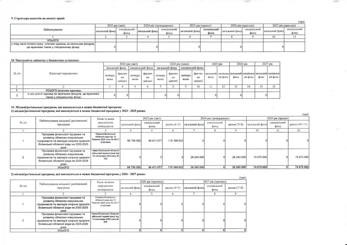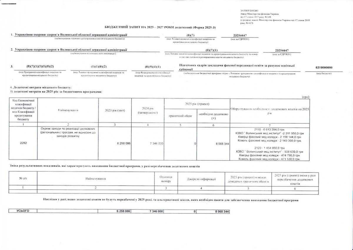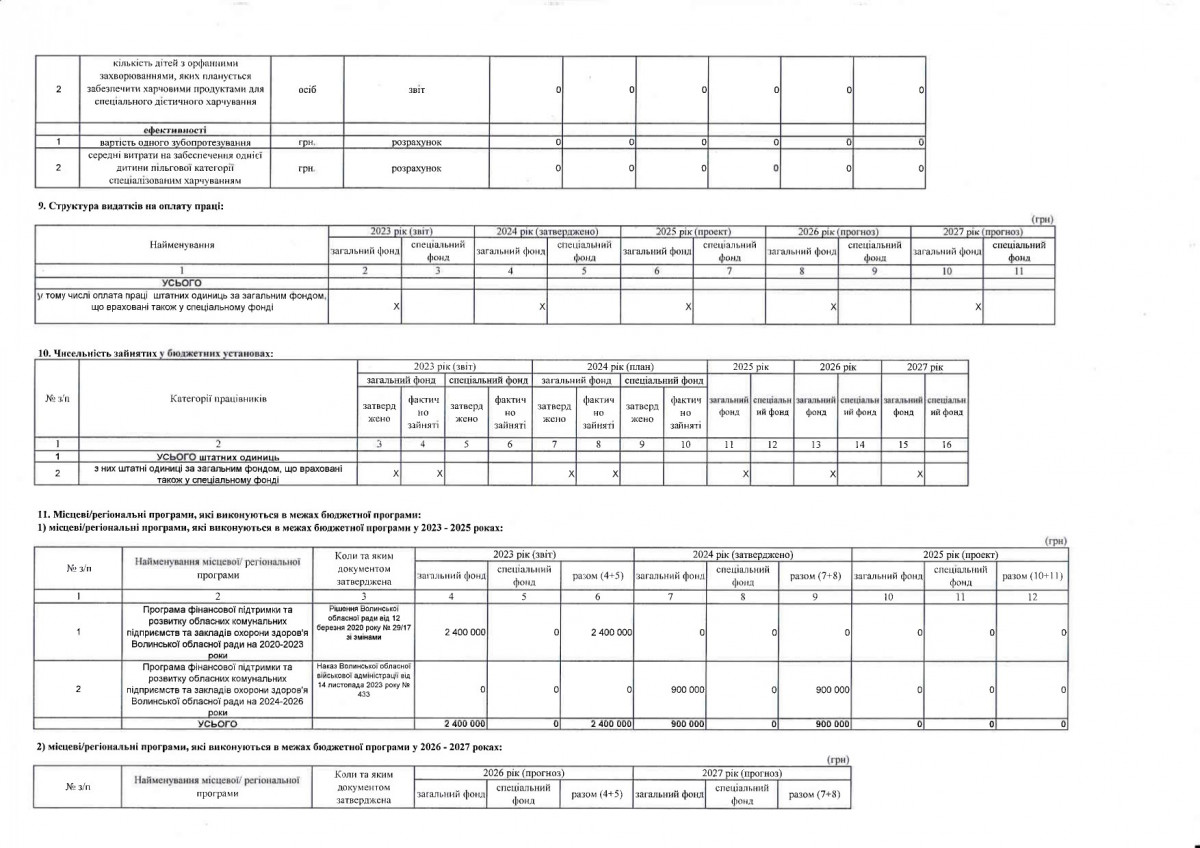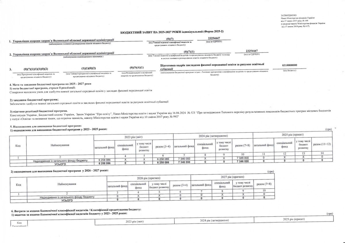 Бюджетний запит Волинської обласної державної адміністрації на 2025-2027 роки за бюджетною програмою 7731010 «Здійснення виконавчої влади у Волинській області»