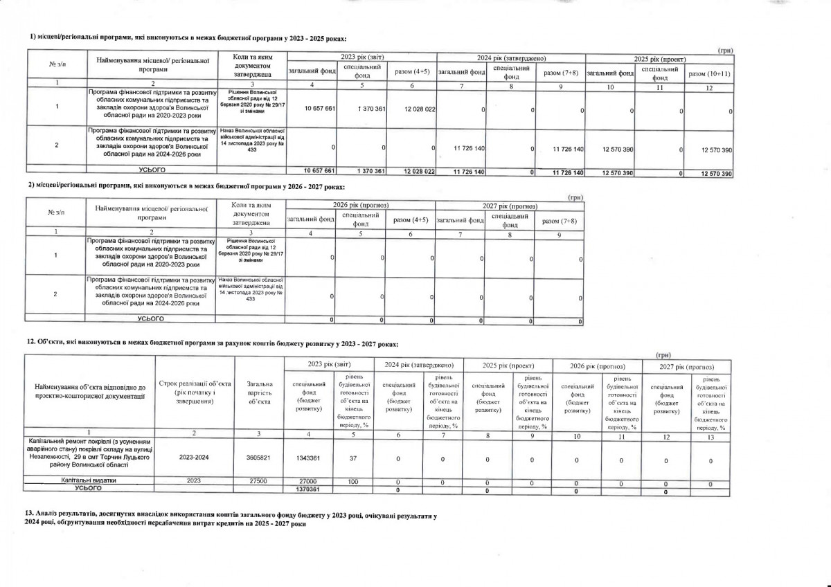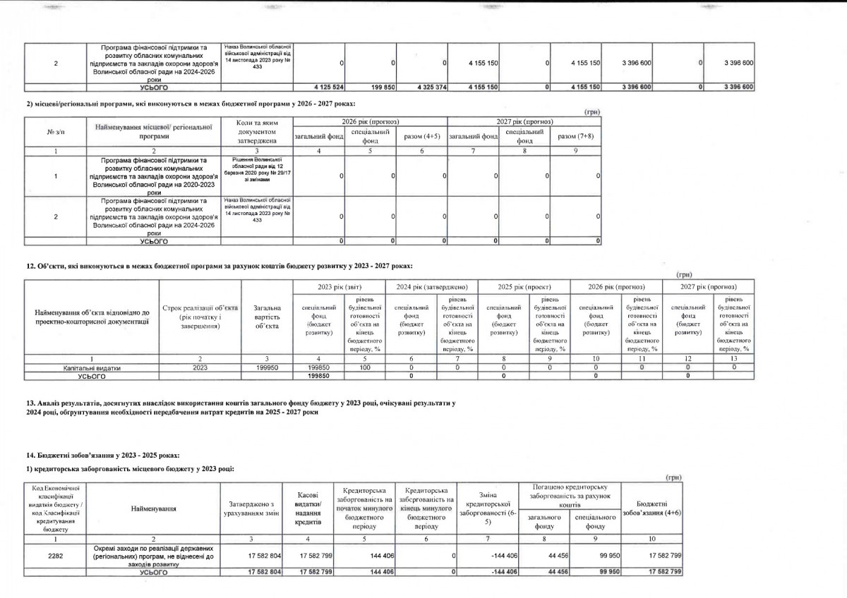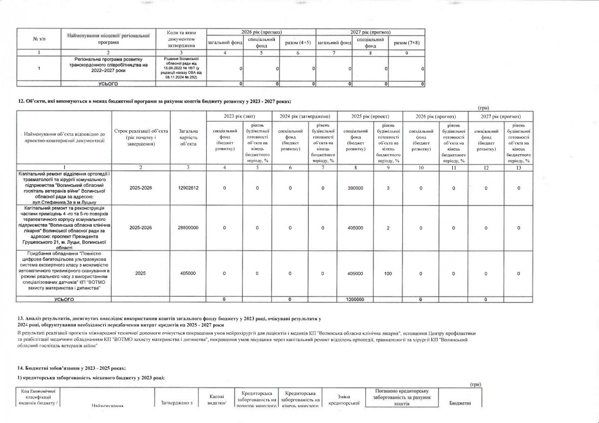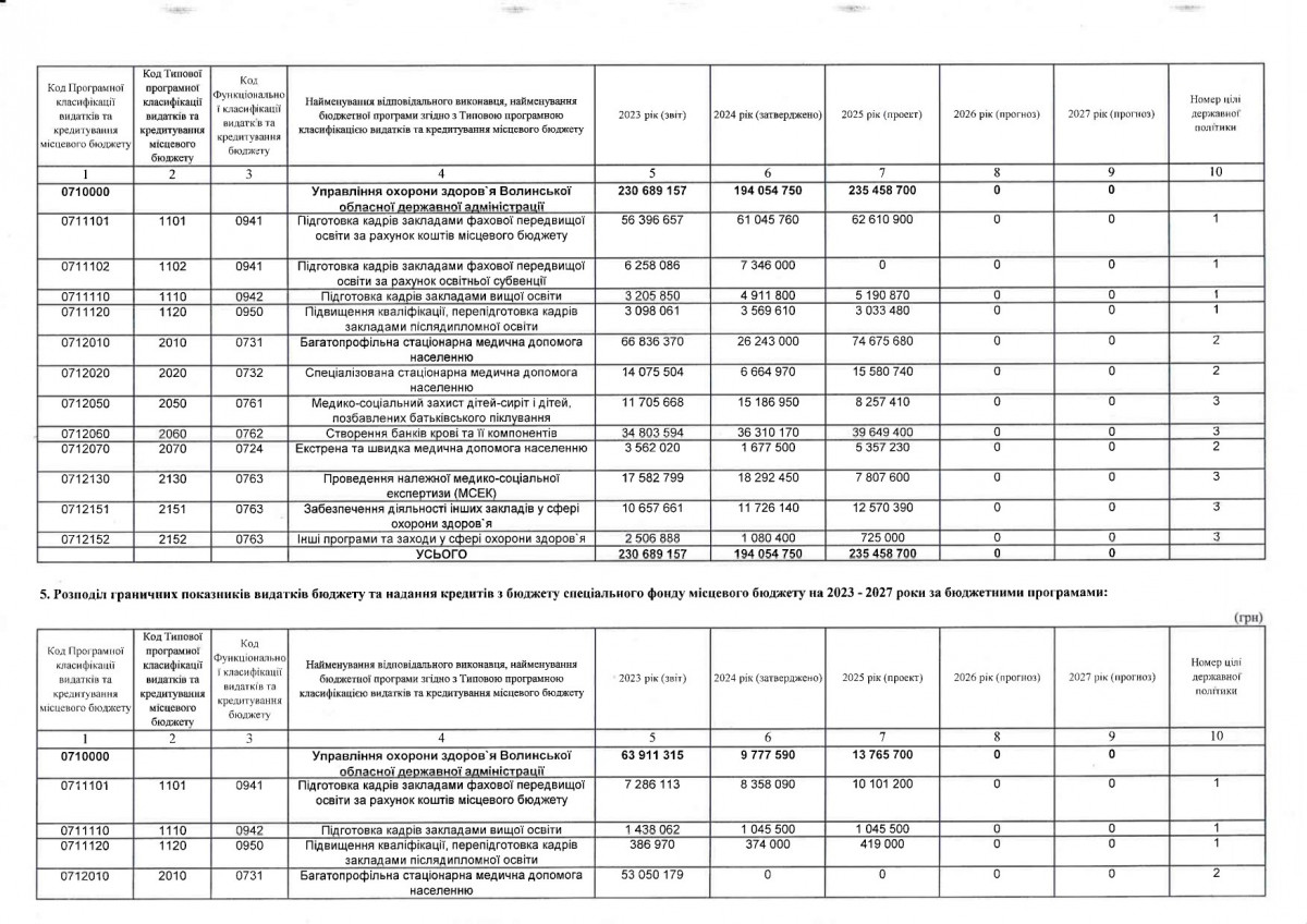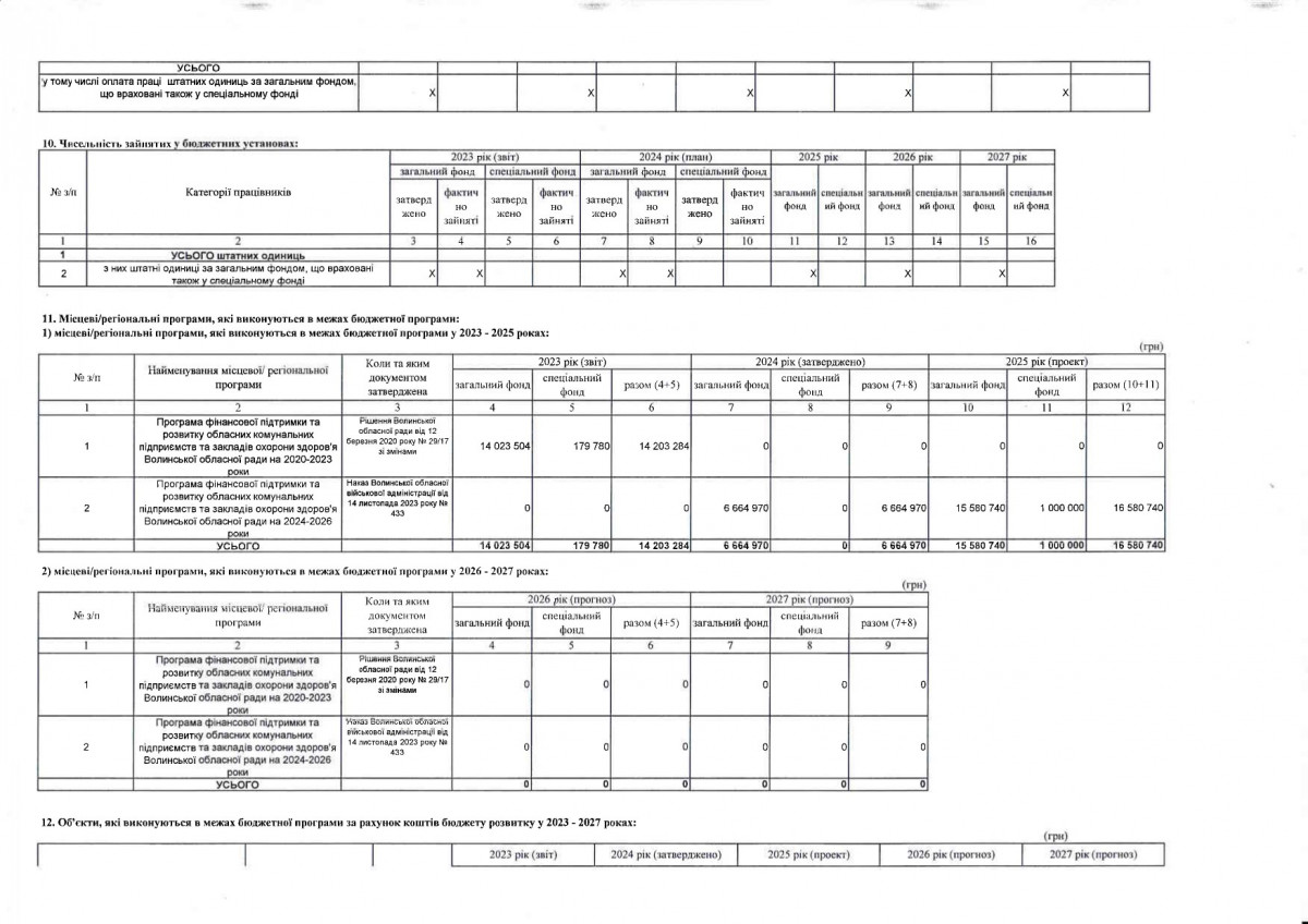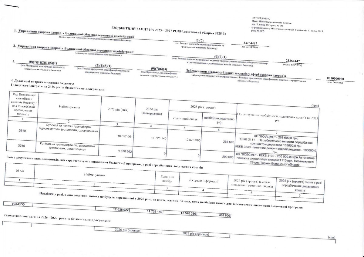 Бюджетні запити від ГРК Волинської ОДА на 2024 рік