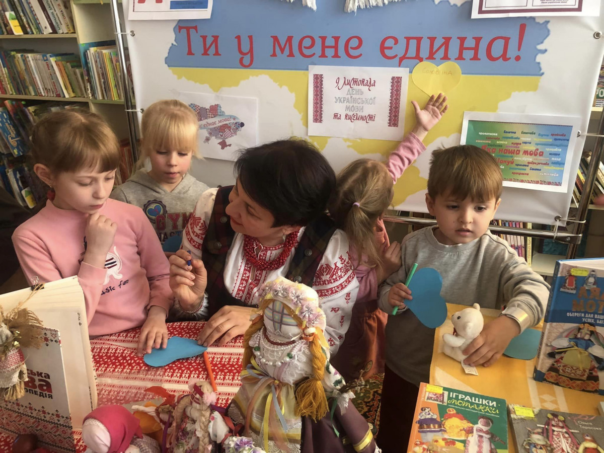 До Дня української писемності та мови у Волинській обласній бібліотеці для дітей проведено поетичну веселку «Моя мова барвінкова», під час якої діти з різних куточків України підбирали найкращі, найтепліші слова про українську мову, створюючи мапу любові до нашої Батьківщини. Найбільшим, найсильнішим оберегом кожного народу є рідна мова – багато цікавих фактів дізнались про українську мову і написали про неї на жовто-блакитних сердечках епітети під час скриньки цікавих фактів «Народна мова – скринька золота». Кожен мав змогу створити собі ляльку-мотанку під час майстер-класу «Оберіг з бабусиної скрині», адже вона – оберіг людської душі й долі, символ Берегині роду, ниточка єднання поколінь. Нехай же ці обереги охороняють від усього злого наших дітей, в серцях яких так багато любові та віри…