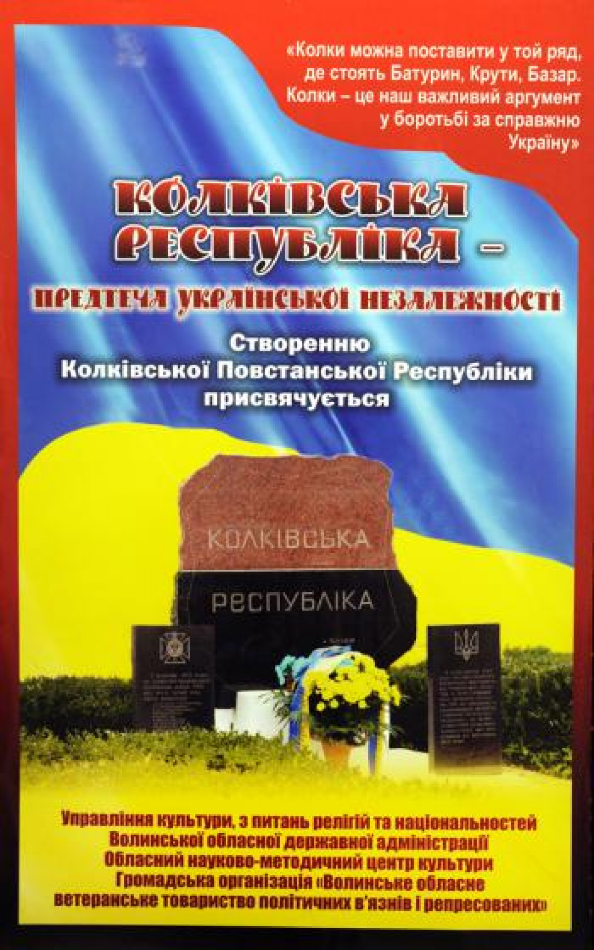 Карантин – не привід відмовлятися від творчості! Фахівцями Обласного науково-методичного центру культури, за участі громадської організації «Волинське обласне ветеранське товариство політичних в’язнів і репресованих», підготовлено мистецьку онлайн виставку «Колківська Республіка – предтеча української незалежності», приурочену 77-й річниці створення Колківської Повстанської Республіки. Матеріали онлайн виставки презентовані на офіційному сайті Центру культури (http://www.nmck-volyn.com.ua/news_detail.php?id=544) та поширені на сторінках соціальних мереж.