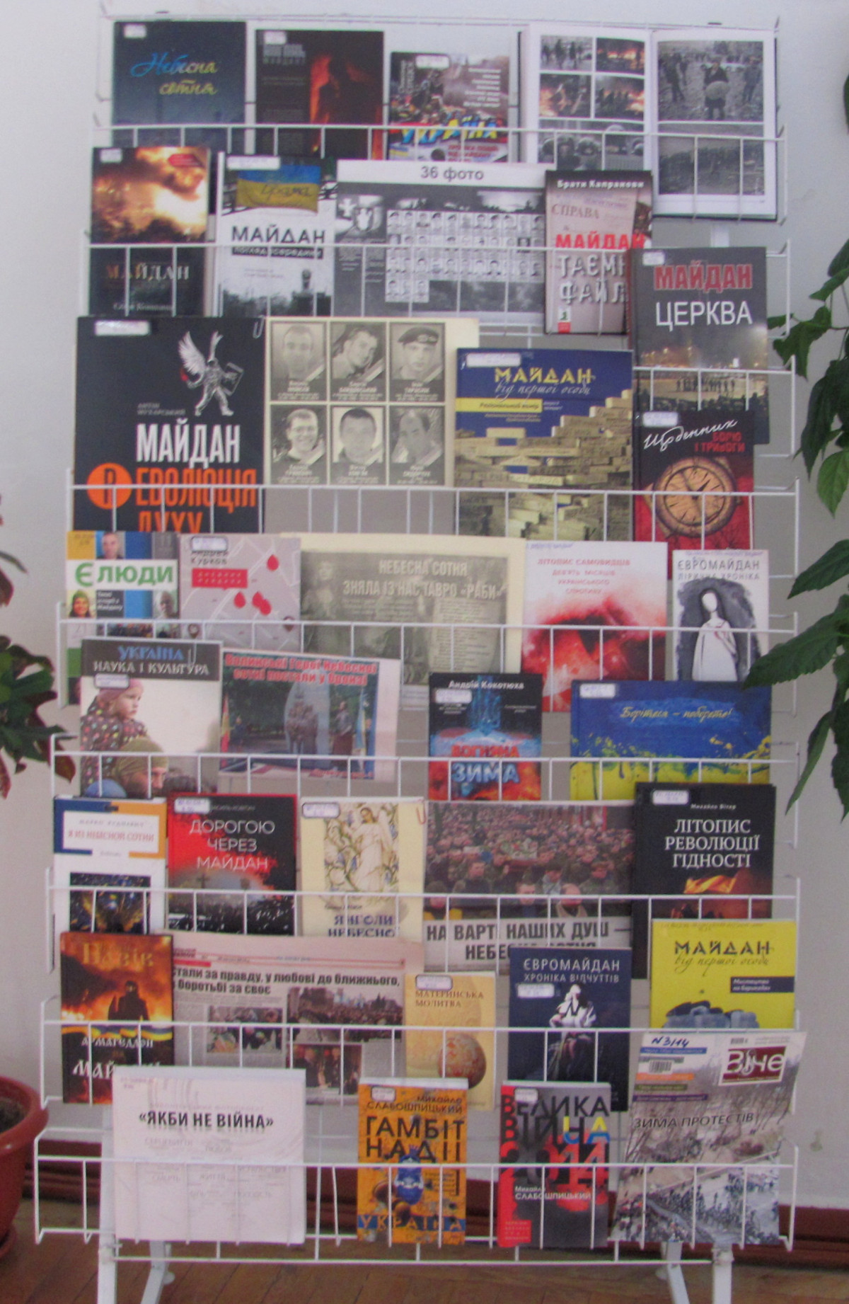 Розгорнута виставка-пам'ять «Час плине, а пам’ять залишається…» познайомила учасників заходу з публіцистичними, художніми виданнями, що розкривають хроніку подій під час масових акцій протесту протягом зими 2013-2014 років, які ввійшли в історію, як Революція Гідності.