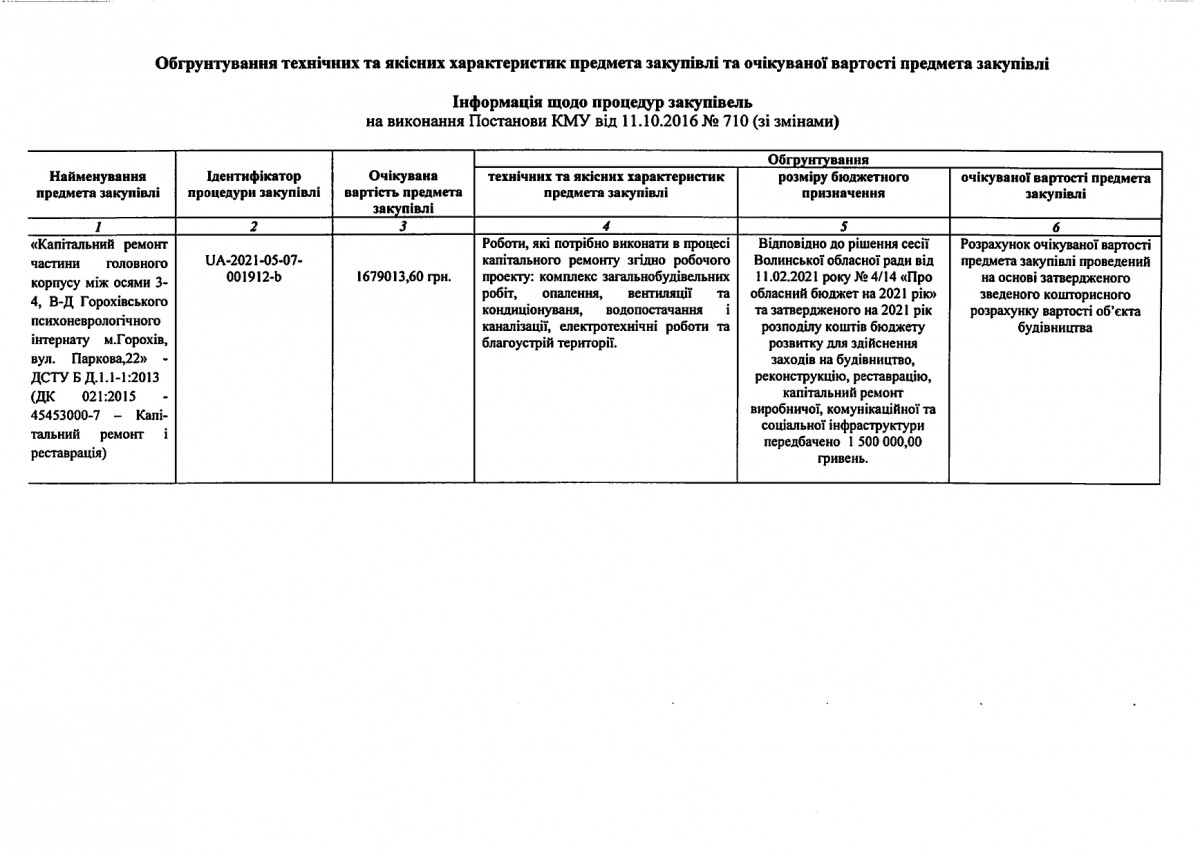 07 травня 2021, 12:27 останні оновлення: 21 жовтня 2024 Капітальний ремонт частини головного корпусу між осями 3-4, В-Д Горохівського психоневрологічного інтернату м.Горохів, вул. Паркова,22