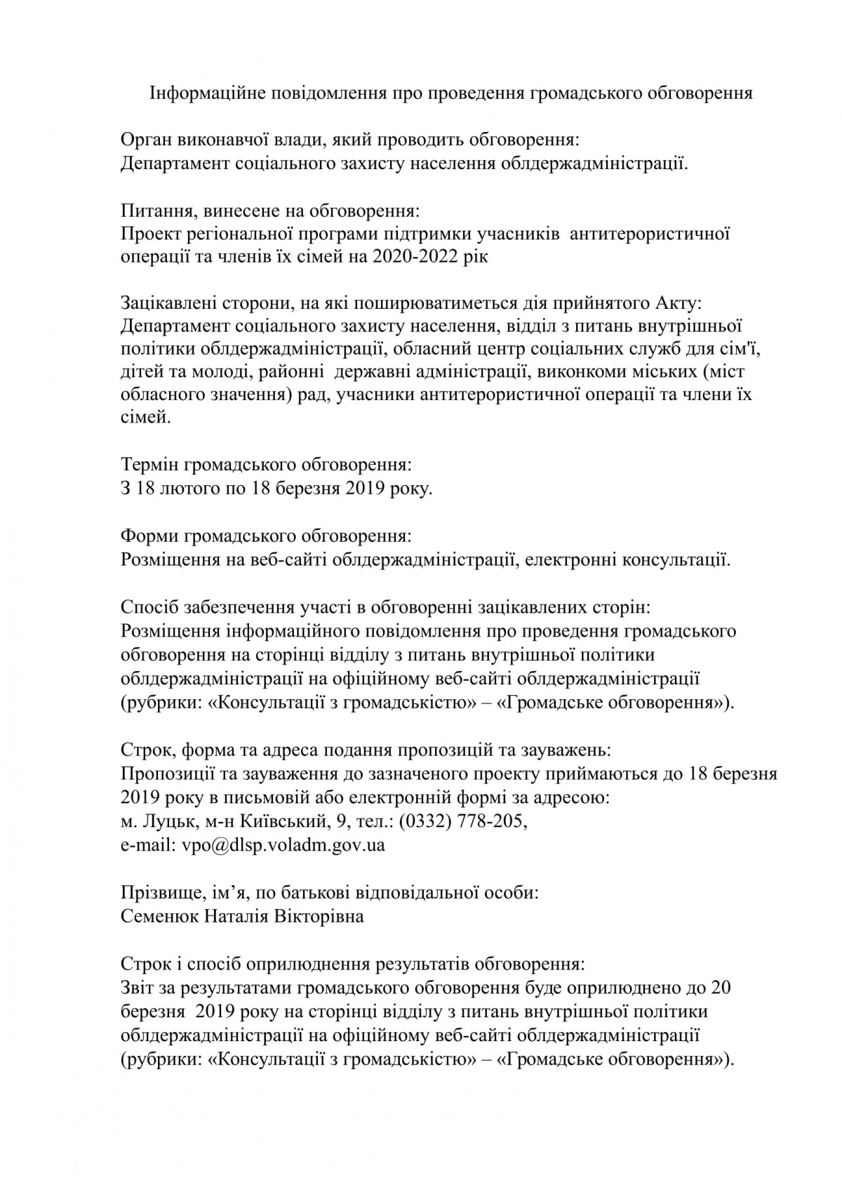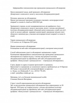 18 лютого 2019, 11:12 останні оновлення: 28 лютого 2019 Інформаційне повідомлення про проведення громадського обговорення