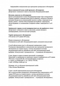 03 квітня 2019, 11:59 останні оновлення: 04 квітня 2019 Інформаційне повідомлення про проведення громадського обговорення