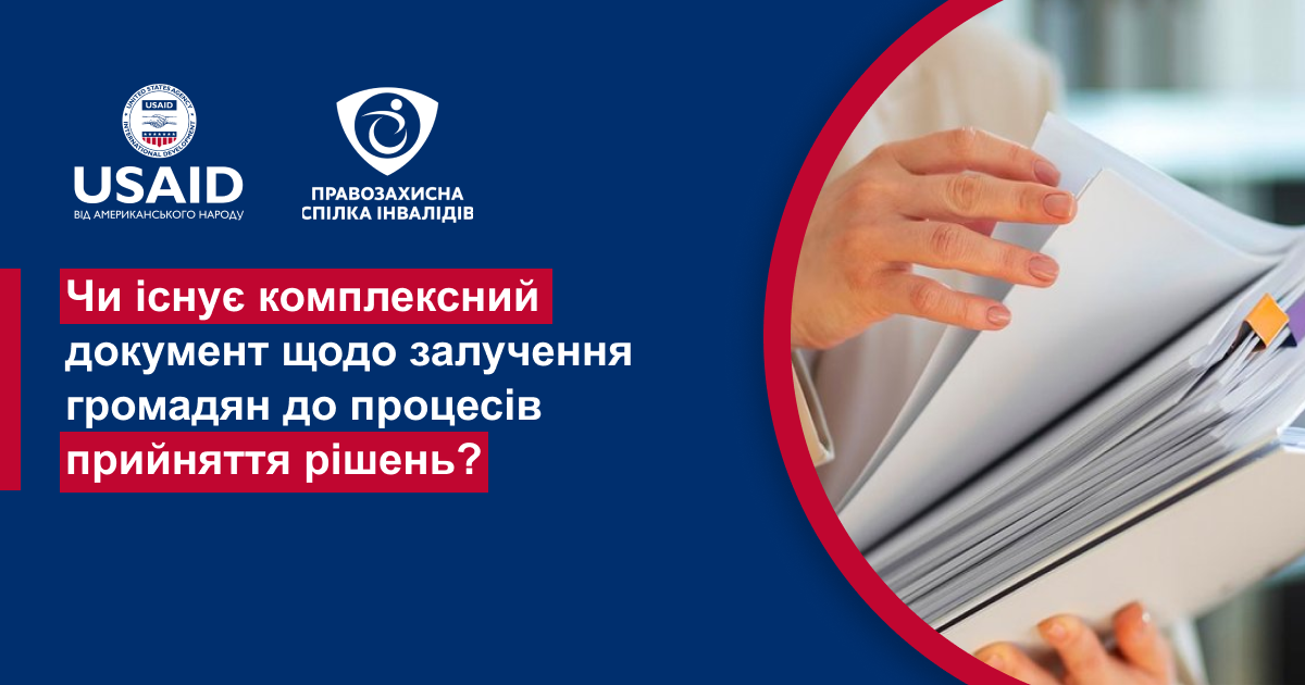 Ця публікація була створена Всеукраїнською громадською організацією інвалідів «Правозахисна спілка інвалідів» у рамках проєкту «Дослідження участі громадськості у процесах прийняття владних рішень у партнерських громадах Проєкту USAID «ГОВЕРЛА» та стала можливою завдяки Агентству США з міжнародного розвитку (USAID) та щирій підтримці американського народу через Проєкт USAID «ГОВЕРЛА». Зміст цієї публікації не обов’язково відображає погляди USAID та Уряду США.