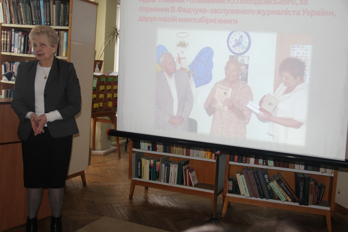 Про автора 12 поетичних збірок, 7 романів, який був представником польсько-українського пограниччя, розповіли ведучі імпрези, бібліотекарі Катерина Веремчук, Марія Лавренюк. Уривки з творів Юзефа Лободовського, його спогадів цитувала завідувач відділу Ольга Кириченко. Зокрема, був наведений уривок із поеми «Похвала Україні», де поет висловив бажання: «…хотів я дві батьківщини об’єднати веселкою перемир’я, хоч сам роздертий навпіл».