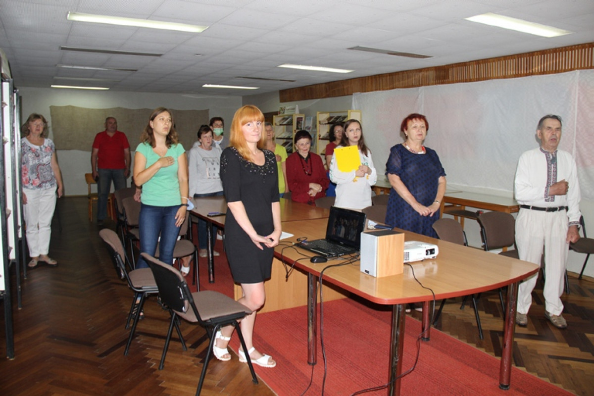 Вірш «Єдина Україна» Дмитра Чередниченка продекламувала завідувачка відділу Олена Курило, яка була й автором сценарію мистецької години. Закінчився захід спільним виконанням гімну України.