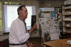 Емоційною вершиною мистецької години став виступ шановного гостя – Заслуженого працівника культури України, легендарного керівника хору «Посвіт » Ростислава Григоровича Кушнірука . Саме цьому колективу випала честь уперше 15 липня 1990 року виконати гімн України, досі заборонений, біля стін Луцької міської ради. Потім були виступи в Києві, на запорізькій землі, проте перше виконання було незабутнім. Ростислав Григорович також повідав про нелегку життєву одіссею своєї родини під час заслання в далекому Сибіру, про те, як патріоти українці далеко за межами України берегли українське слово і пісню.