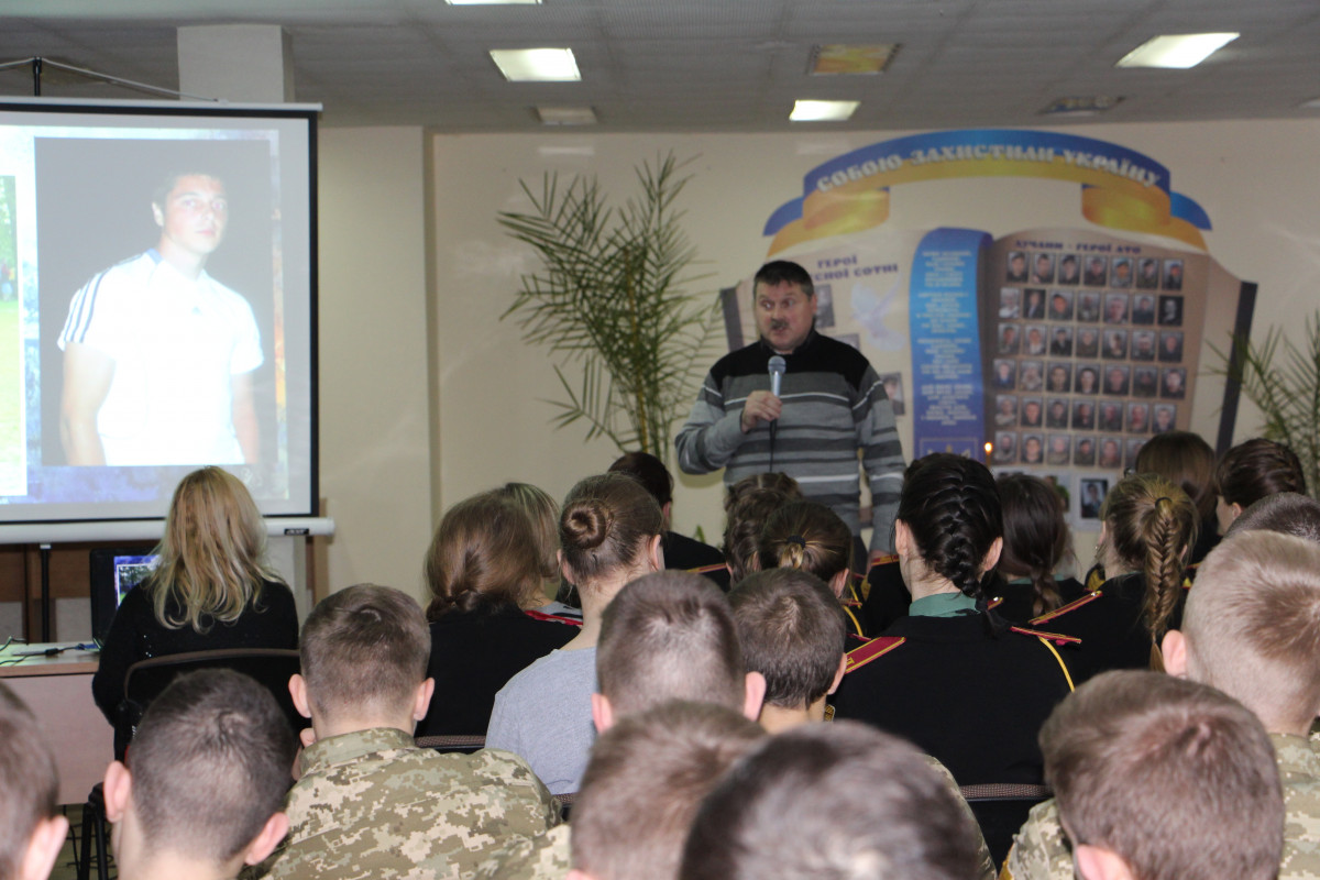 З хвилюванням, затамувавши подих, юнаки і дівчата вслухалися у розповідь батька Івана Тарасюка Миколи Ігоровича з села Залісочого Ківерцівського району, які втратили на Майдані єдиного сина, студента медичного коледжу «Монада». З високим патріотичним словом звернувся до присутніх отець Степан, священик-капелан, настоятель Свято-Михайлівського храму на Вишкові в Луцьку. Разом учасники заходу проголосили молитву за мир в Україні. Про необхідність торжества закону стосовно організаторів кривавих розстрілів на Майдані вела мову Любов Сітовська – регіональний представник уповноваженого Верховної Ради з прав людини у Волинській області.