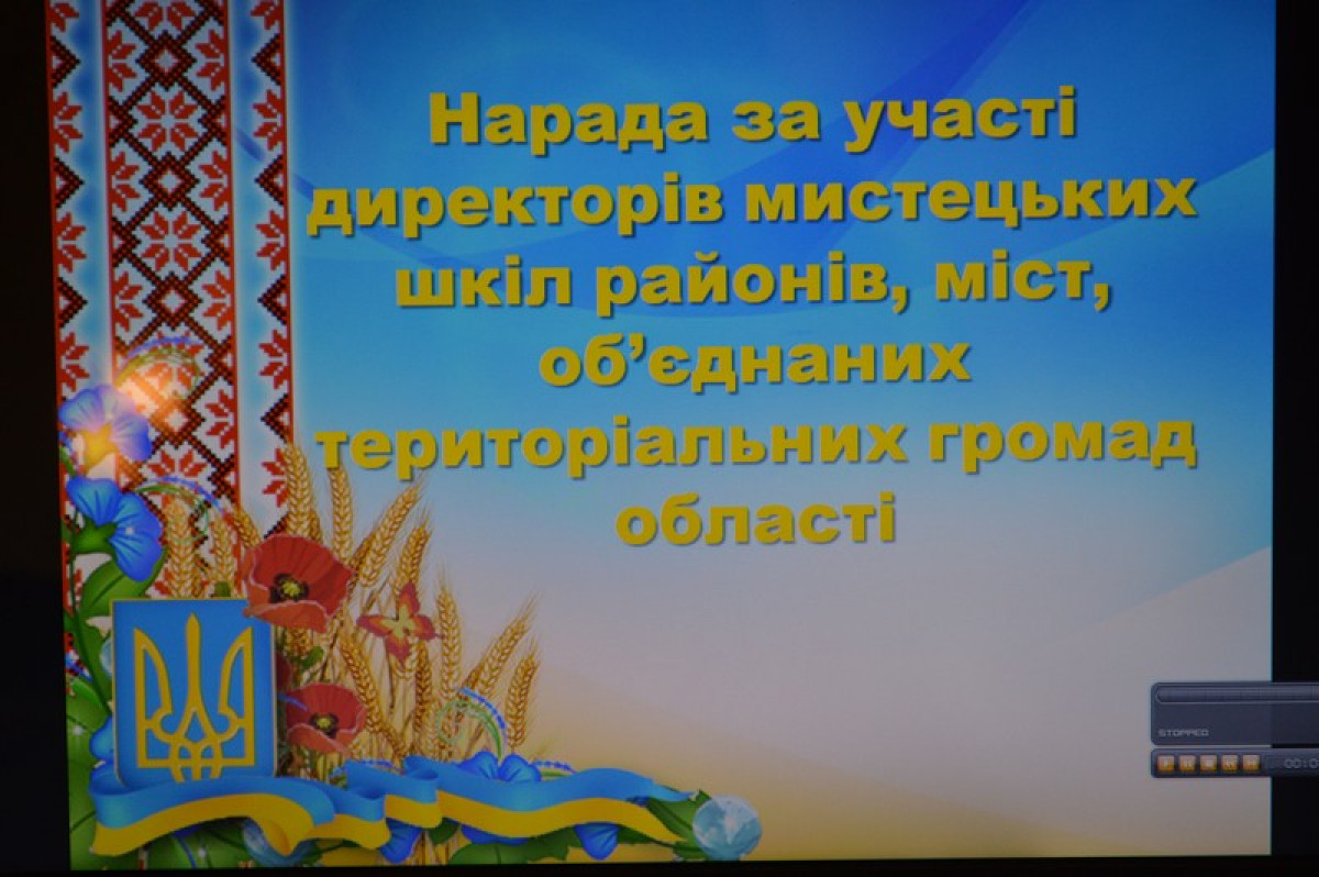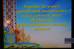 У ході наради директор Обласного науково-методичного центру культури Любов Рожнова порушила питання щодо проведення конкурсів та семінарів-практикумів для викладачів мистецьких шкіл області та створення методичного об’єднання при Обласному науково-методичному центрі культури. Любов Володимирівна також ознайомила присутніх з рейтингом мистецьких шкіл області.