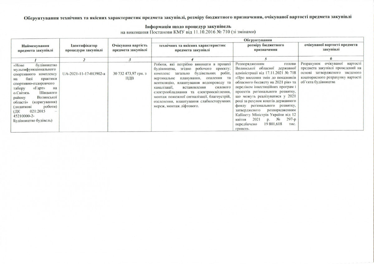 «Нове будівництво мультифункціонального спортивного комплексу на базі практики спортивно-оздоровчого табору «Гарт» на о.Світязь Шацького району Волинської області» (коригування) (додаткові роботи)