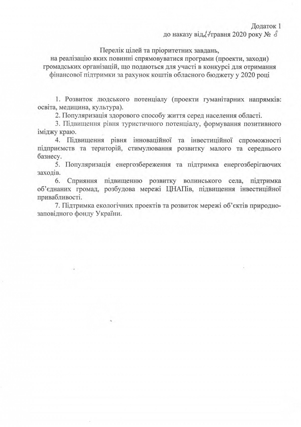 Конкурс проводиться відповідно до наказу начальника відділу з питань внутрішньої політики Волинської обласної державної адміністрації “Про проведення конкурсу з визначення програм, розроблених громадськими організаціями для виконання (реалізації) яких надається фінансова підтримка з обласного бюджету на 2020 рік” від 27 травня 2020 року №08 та Порядку проведення конкурсу з визначення програм (проектів, заходів), розроблених інститутами громадянського суспільства, для виконання (реалізації) яких надається фінансова підтримка, затвердженого постановою Кабінету Міністрів України від 12 жовтня 2011 року №1049, із змінами, внесеними згідно з Постановами КМ.