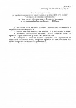 У межах конкурсу можуть бути підтримані такі види діяльності: