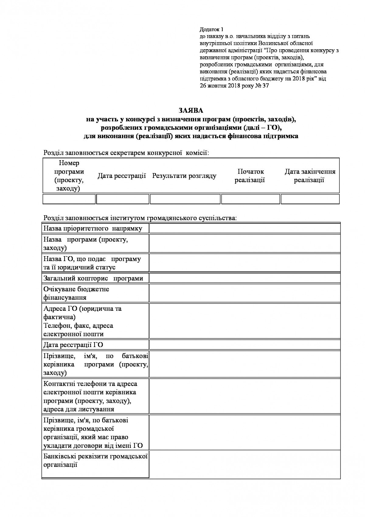 Наказ від 26.10.2018 року № 37