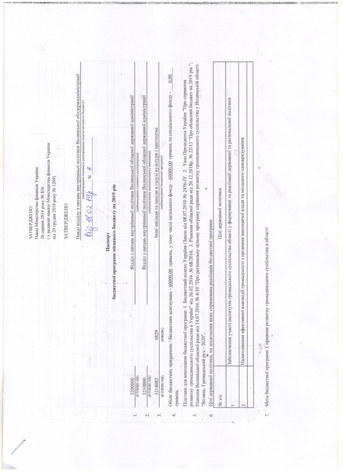18 лютого 2019, 12:14 останні оновлення: 27 лютого 2019 Паспорт бюджетної програми місцевого бюджету "Інші заходи в галузі культури і мистецтва" на 2019 рік