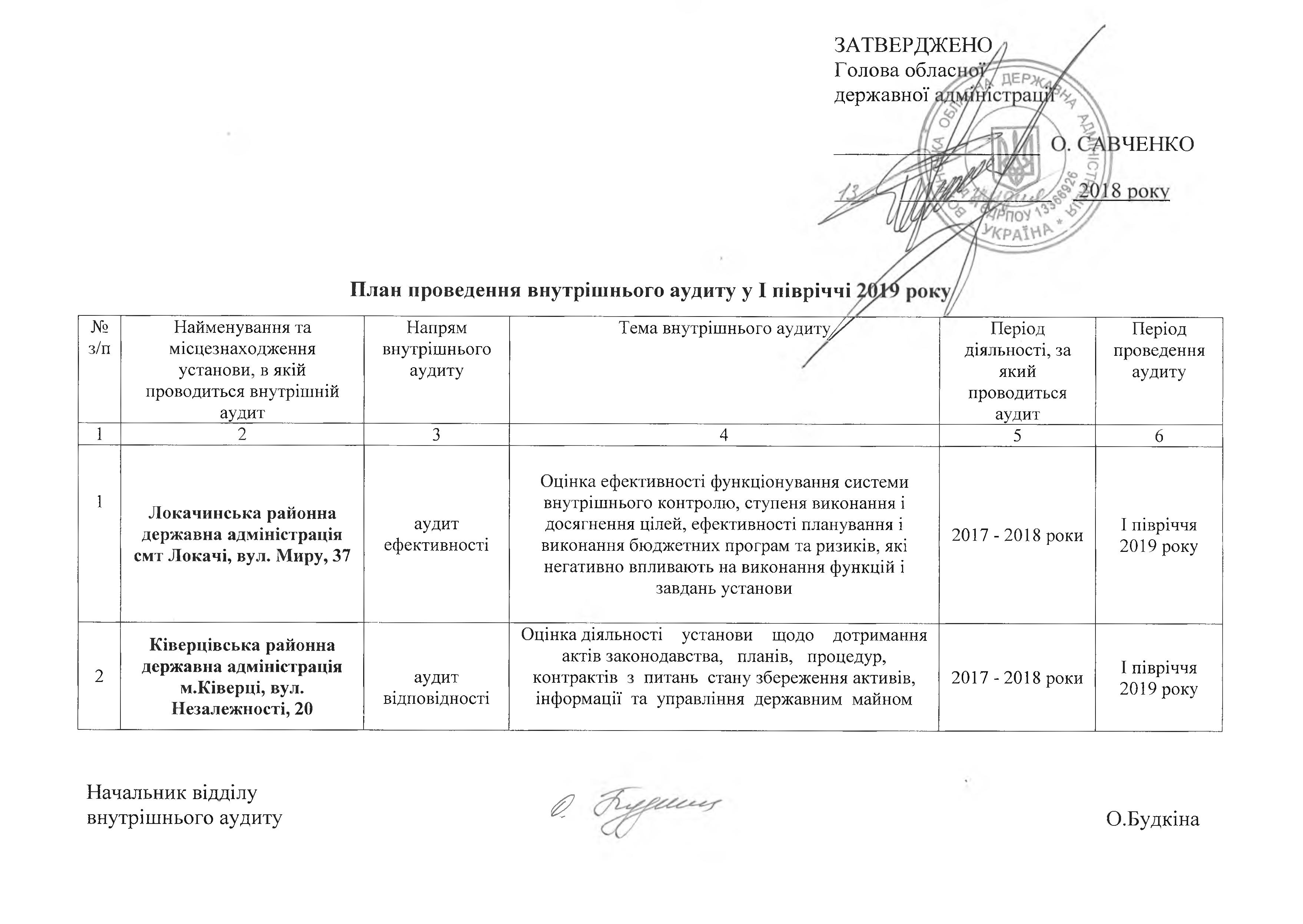 Стратегічний план діяльності з внутрішнього аудиту на 2019-2021 роки Волинської облдержадміністрації
