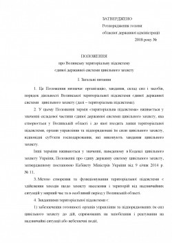 Проект розпорядження голови облдержадміністрації "Про затвердження у новій редації Положення про територіальну підсистему єдиної державної системи цивільного захисту Волинської області"