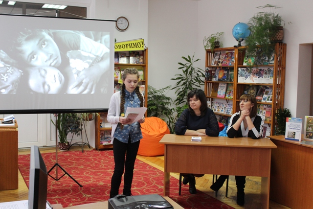 Провідний бібліотекар відділу читання та навчально-творчого розвитку підлітків Волинської дитячої бібліотеки Тетяна Камінська під час інформаційної години допомогла школярам 8-А класу КЗ « Луцький навчально-виховний комплекс загальноосвітня школа I-II ступенів №7-природничий ліцей» отримали кваліфіковані відповіді на складні питання із різних життєвих ситуацій: випадки дитячого боулінгу, нерозуміння в родині, складні відносини із однолітками. Підлітки переглянули відео-сюжет про шкільний булінг та дізналися про відповідальність за це правопорушення. Гості бібліотеки - директор Луцького місцевого центру з надання безоплатної вторинної правової допомоги Ольга Кудрицька та начальник відділу соціальної роботи управління соціальних служб для сім’ї, дітей та молоді Луцької міської ради Людмила Носкова, розповіли учням про організації та органи влади, які покликані захищати права дітей, зокрема у м. Луцьку.