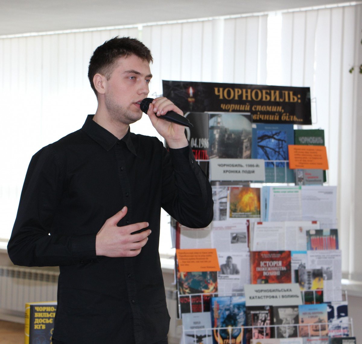 Перед учасниками заходу мали змогу виступити Юрій Зилюк, письменник, журналіст, учасник ліквідації аварії на ЧАЕС; Людмила Стасюк, директорка бібліотеки і Ростислав Кухтей, ініціатор проведення презентації у стінах книгозбірні. У виконанні студентів Луцького педагогічного коледжу – членів клубу «Всесвіт» (керівник - Анатолій Кравець) прозвучали поезії та пісні на чорнобильську тематику. Особливо пам’ятним був виступ студента Олексія Демчука з виконанням пісень «На Чорнобиль журавлі летіли» та «Чорнобиль молодь буде пам’ятати».