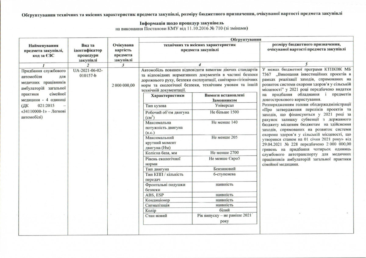 03 червня 2021, 08:19 останні оновлення: 21 жовтня 2024 Придбання службового автомобіля для медичних працівників амбулаторій загальної практики сімейної медицини - 4 одиниці